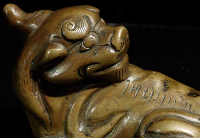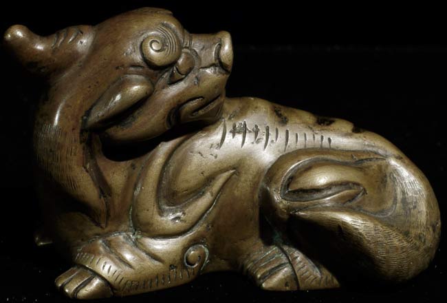 Antique Chinese Mythical Beast Scroll Weight. Appears to have very good age to it.Scroll weight is 1.5" tall, 2" long.