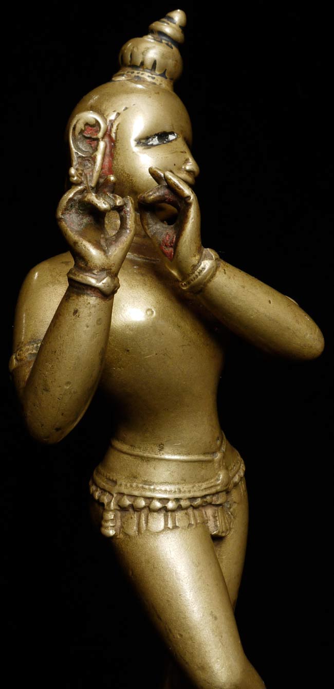 Exquisite Krishna! Great finesse to sculpting and casting. Probably 16th to 18thC. 7.75" tall. Eyes are modern.