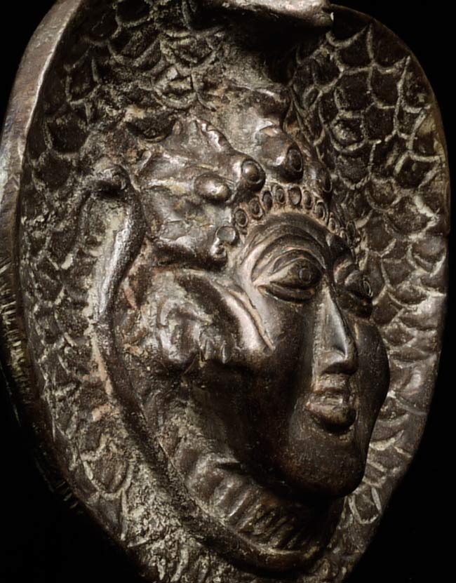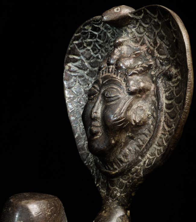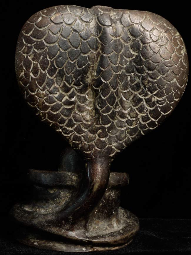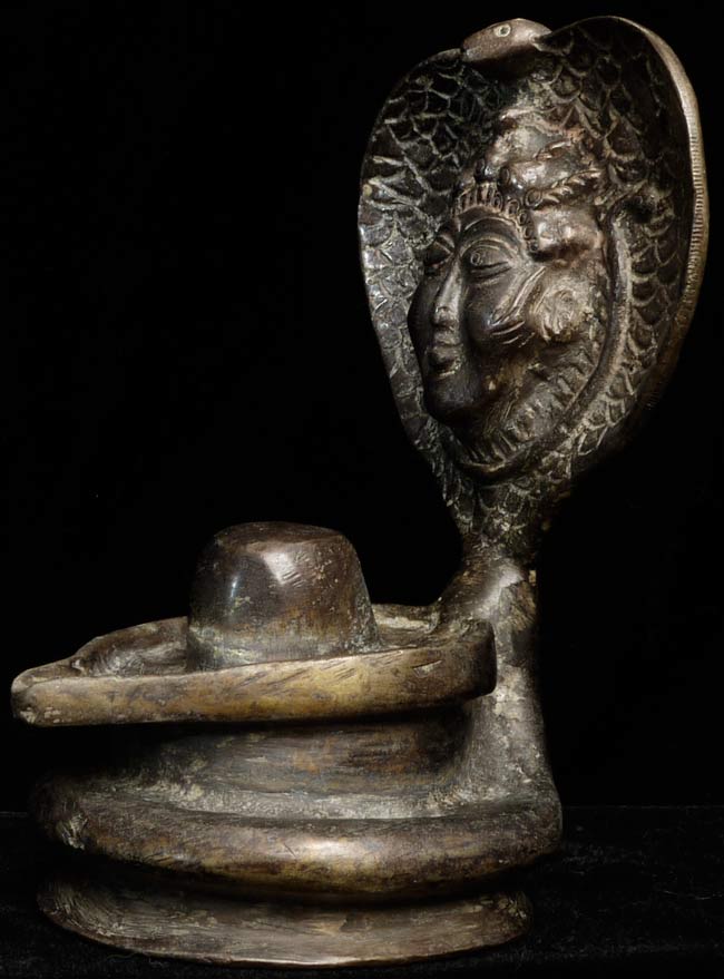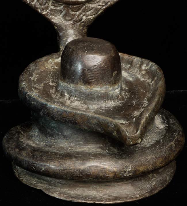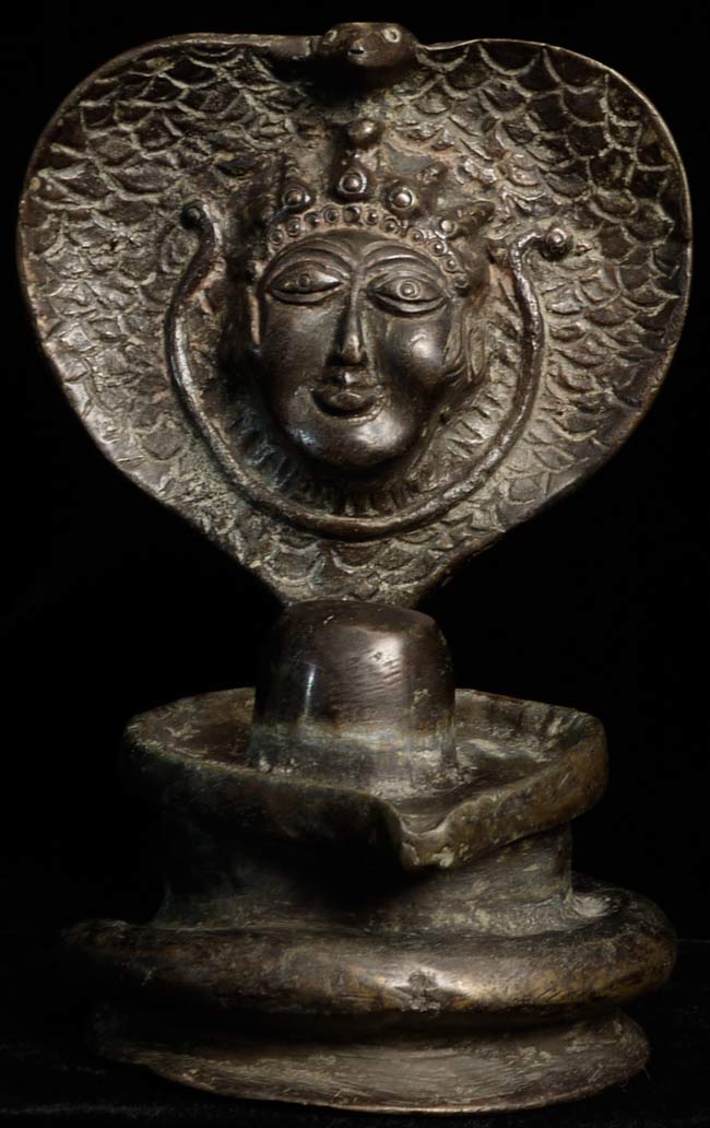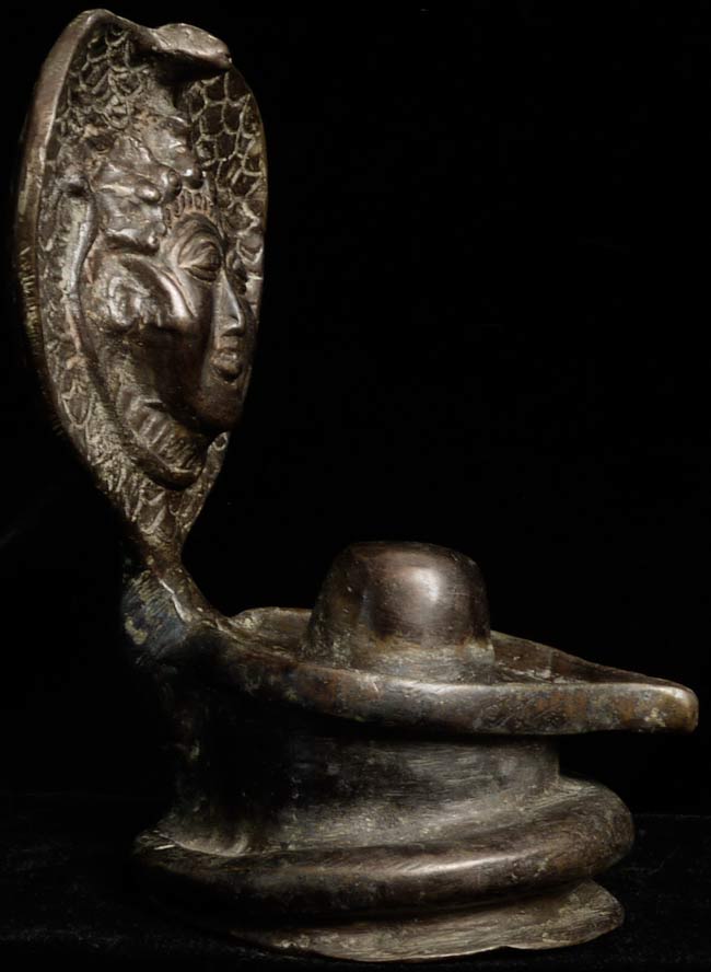 A singular Indian Lingham with Naga with an unusual, yet expressive, face. Judging by its delicate nature, this truly is an old piece. Standing at 6” tall, 4.25” wide, and 4” at its deepest point, there is a heaviness, despite its small frame.