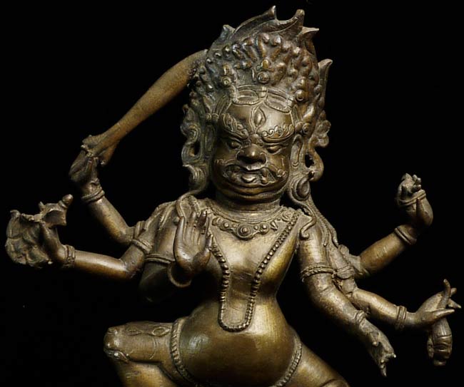 Powerful Antique Nepalese Protective Deity. Large at 9 7/8" tall, 8" at widest point, 3.5" at deepest point.