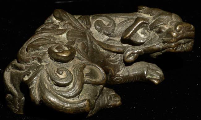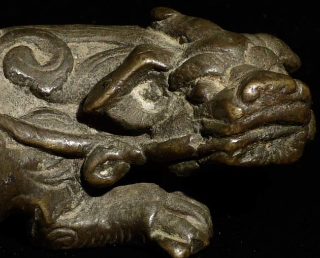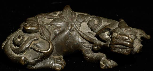 Antique Chinese Mythical Beast Scroll Weight. Great detail to the ornamentation. Appears to have very good age to it. Scroll weight is .75" tall, 3" long.