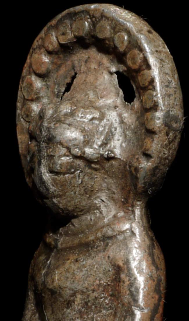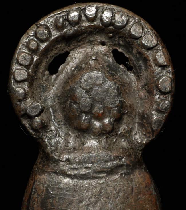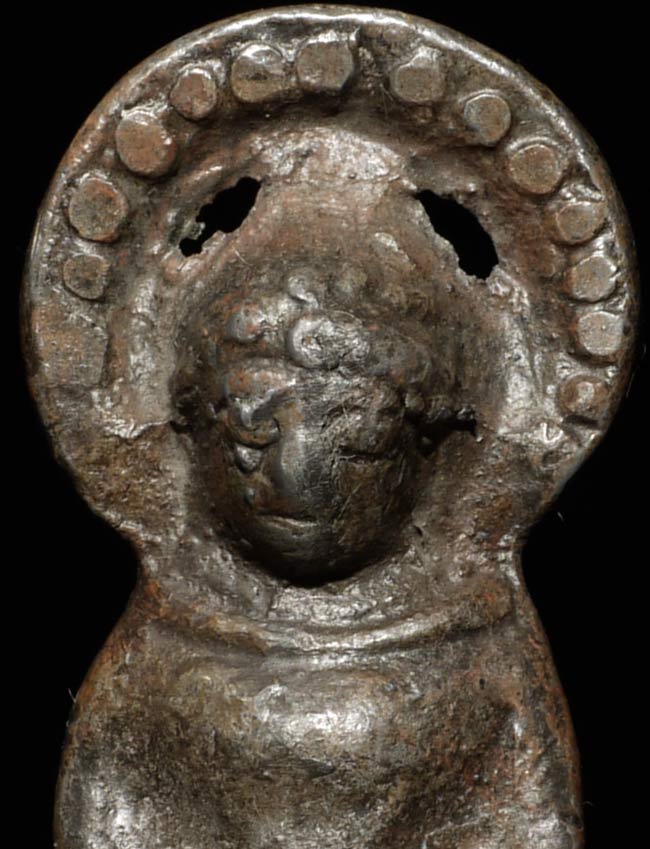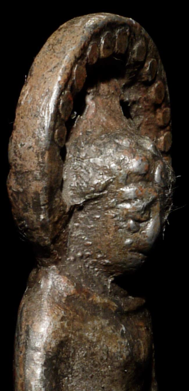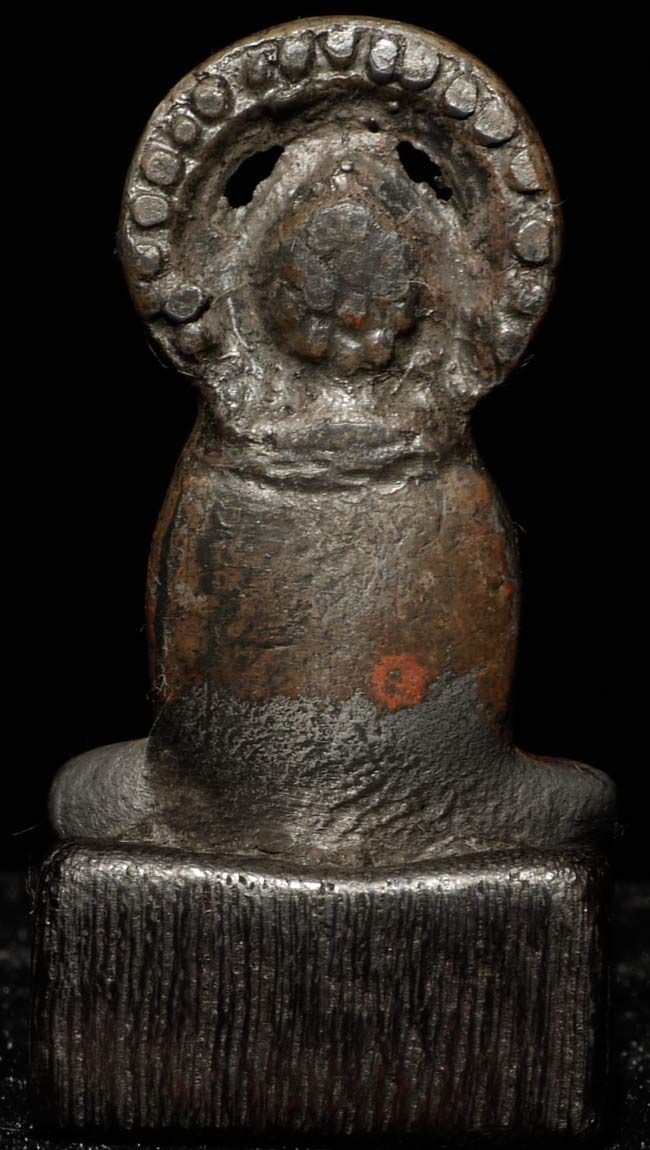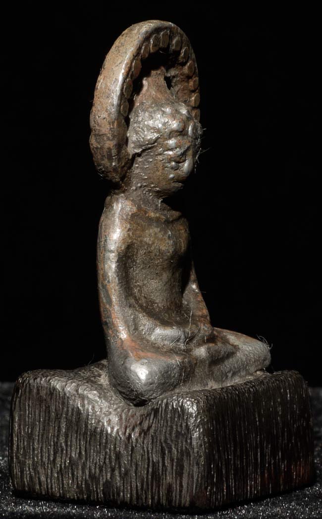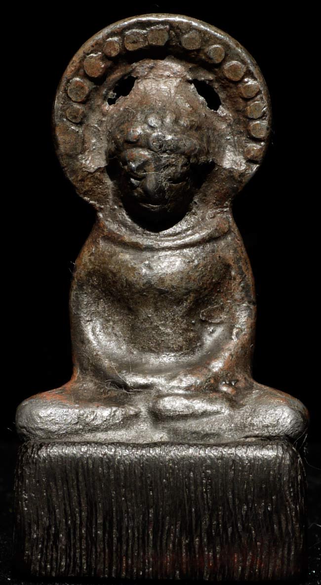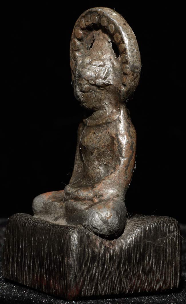 Very early Buddha cast of an alloy which includes lead. Probably in the range of 1,000 years old. Unsure of country of origin. Total height of this sweet little piece is 2.25" tall on a custom base.