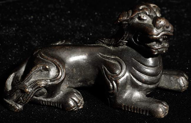 Antique Chinese Mythical Beast Scroll Weight. Appears to have very good age to it.Scroll. Scroll weight is 3" long, 1.25" tall.