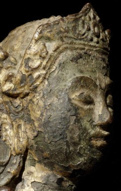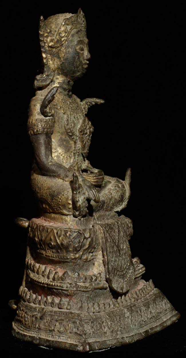 Authentic 19thC Thai Rattanakosin style bronze Buddha. Peaceful face. Measures 6.25" tall, bottom approximately 4.75" x 2.5".