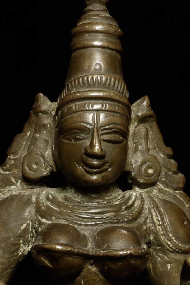 Vintage/Old Indian Bronze. Well cast. Total height of 4.5" from lower foot to top of head.
