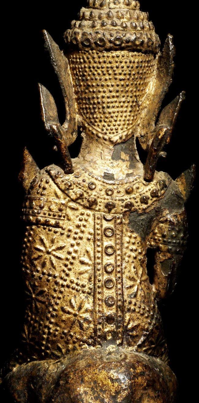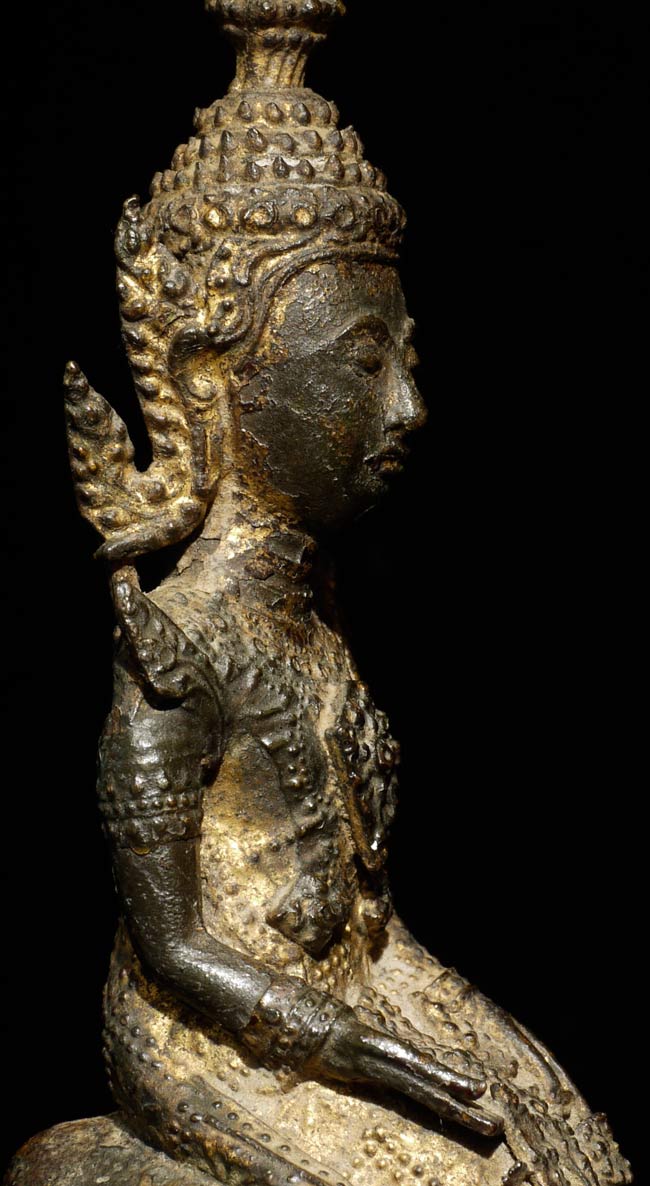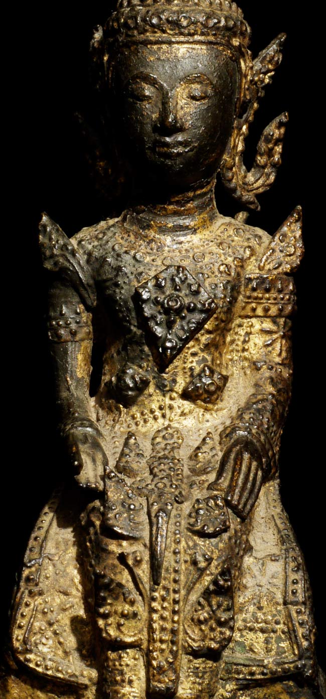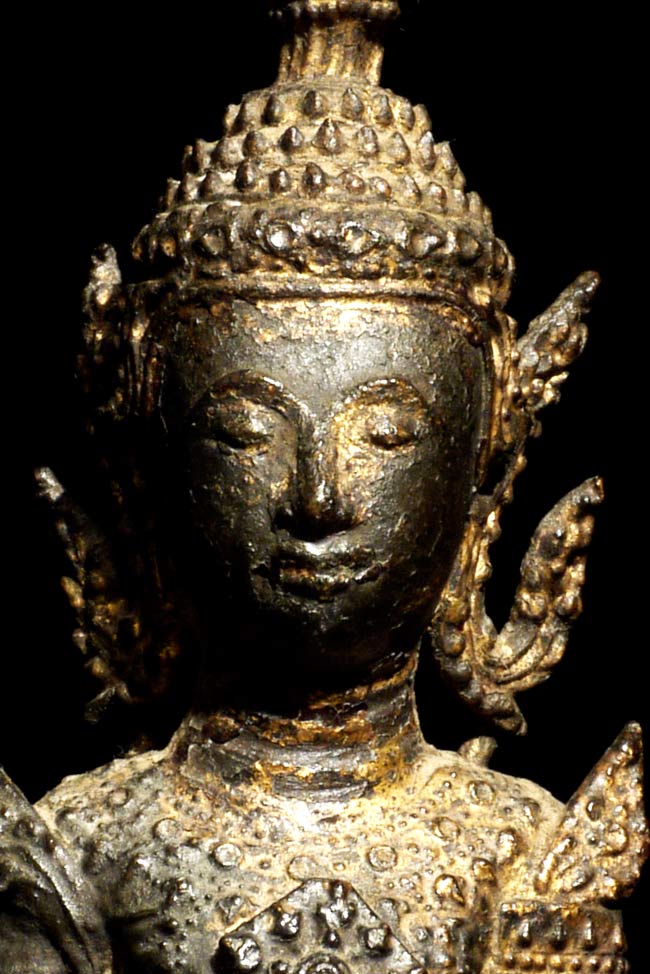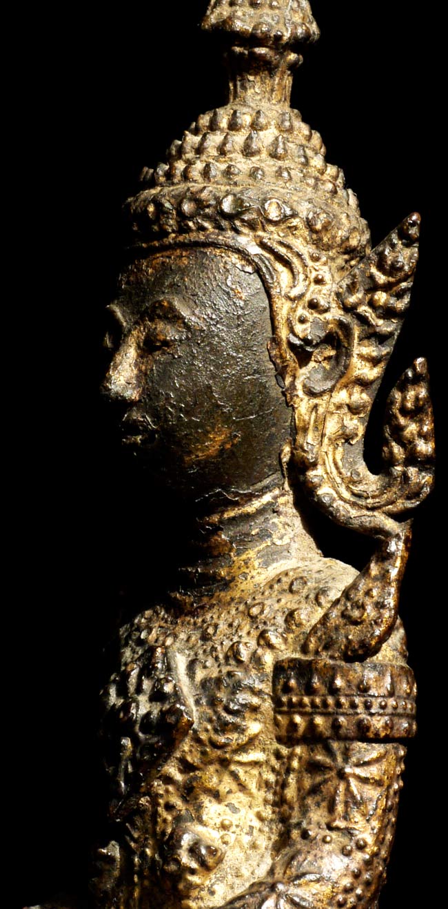 Very sweet 19thC Thai Rattanakosin Buddha with an elephant and monkey at his feet. This type is specific to Thailand. 6.25" tall, 5 1/8" x 3" on bottom.