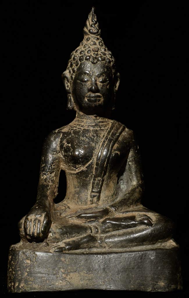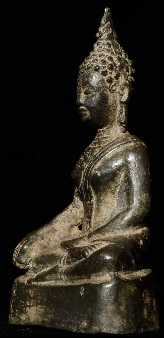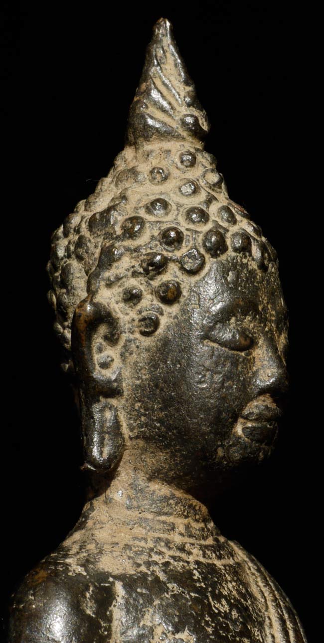Nice 15thC Sukothai Buddha. Joyful serenity in the face. This piece measures 5" tall.