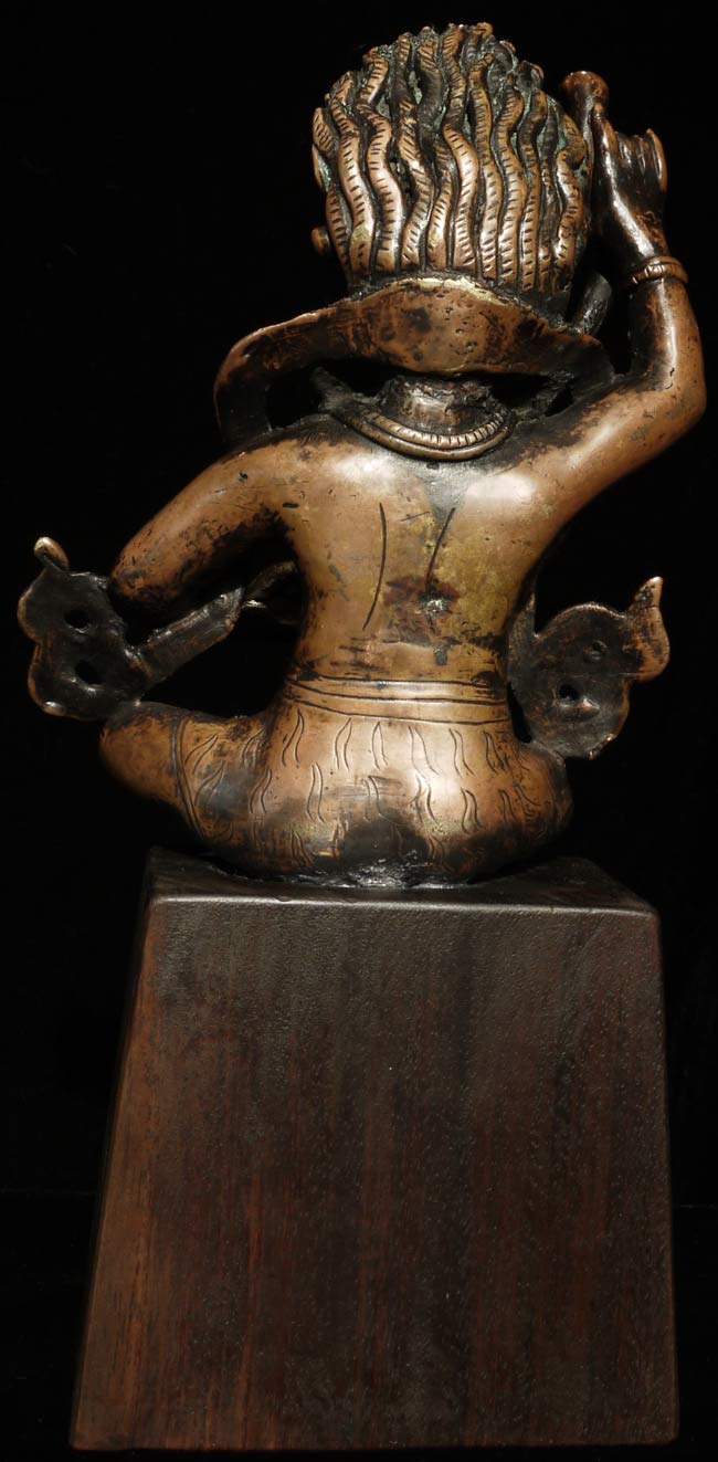 Powerful 18/19thC Tibetan protective deity holding up a snake. Beautifully sculpted and cast. 10" total height, base measures 3.5" tall, 4" x 2"