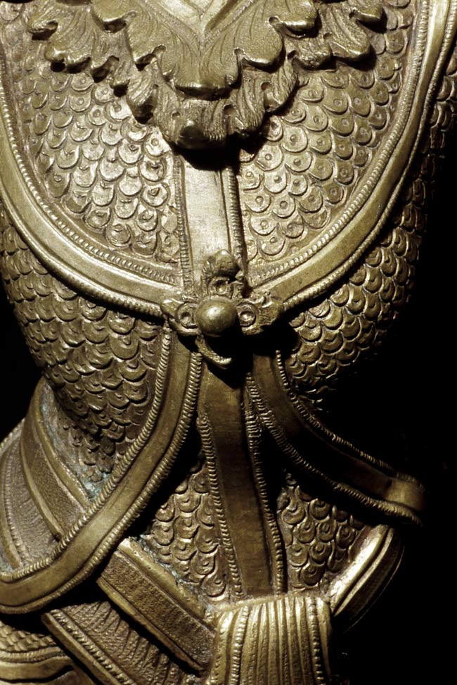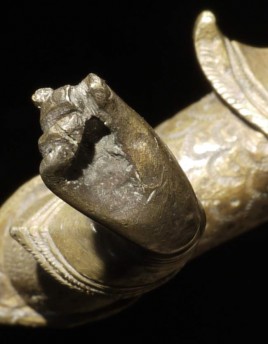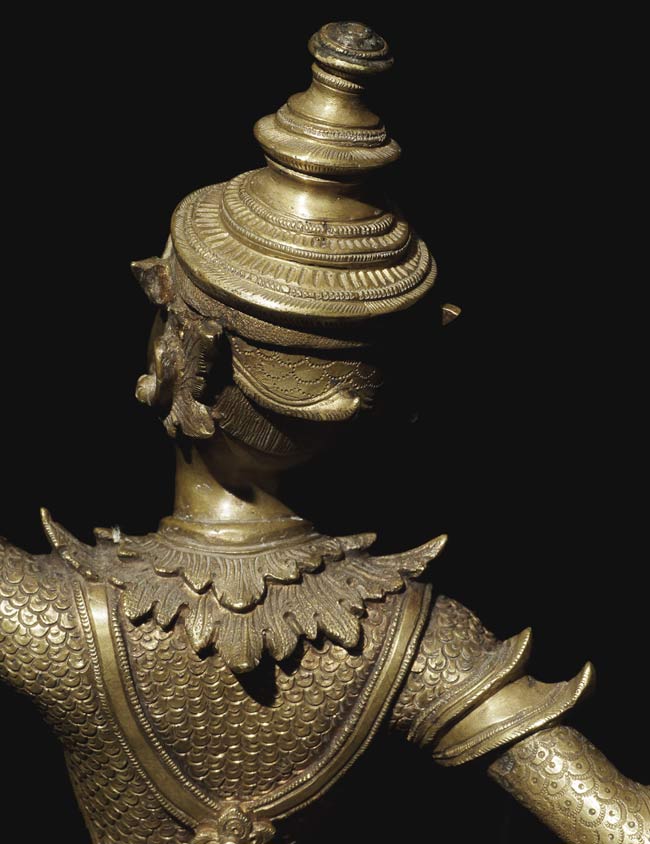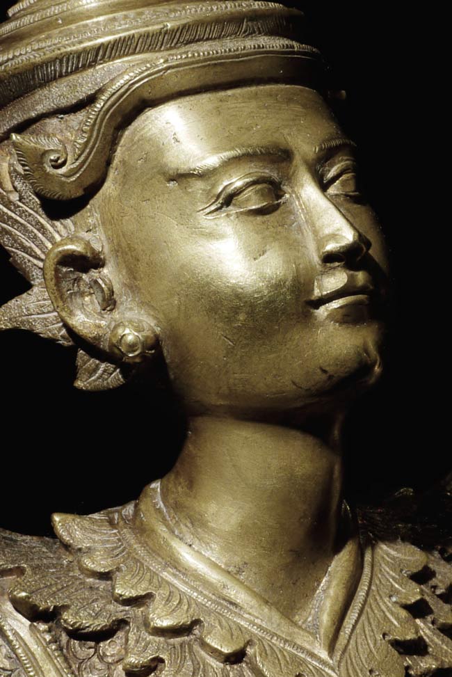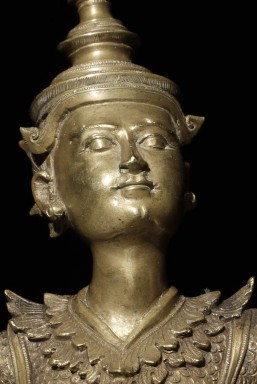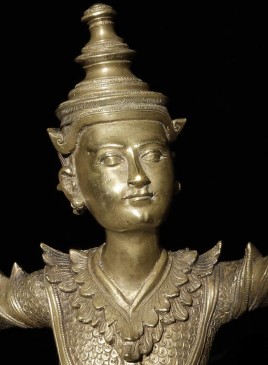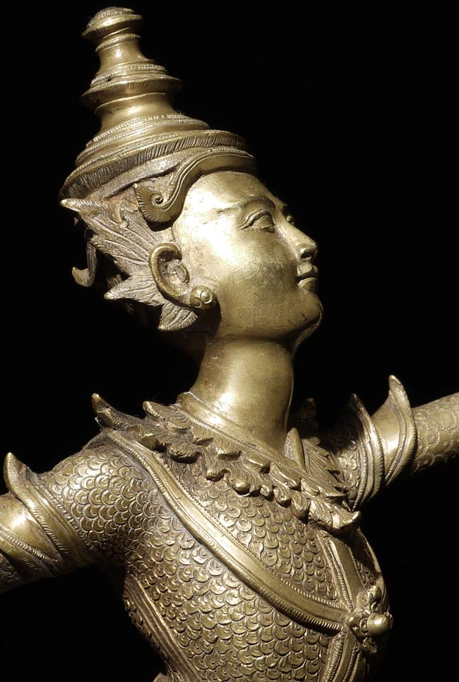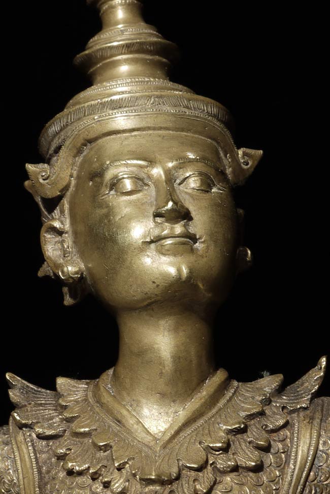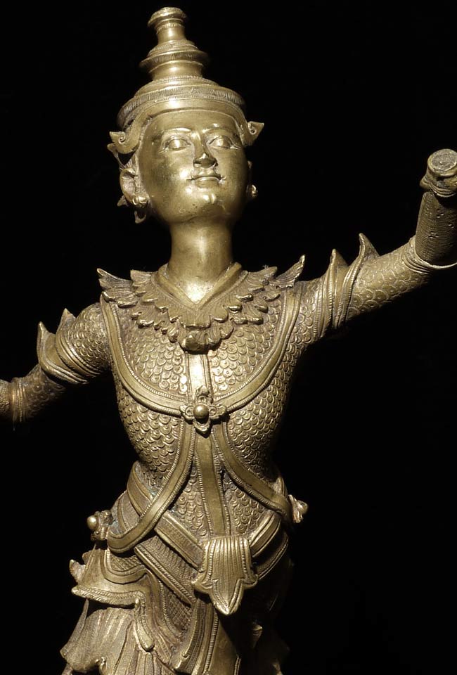 Antique Burmese Nat Figure. Loss to hand, and one bit of the robe is re-attached. Very unusual and beautifully detailed casting technique. Stands 9.25" tall. Exquisite!