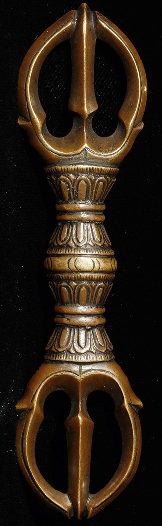 Finely cast antique Japanese flat style Dorje. Probably Meiji period. 5" long, 1.25" wide
