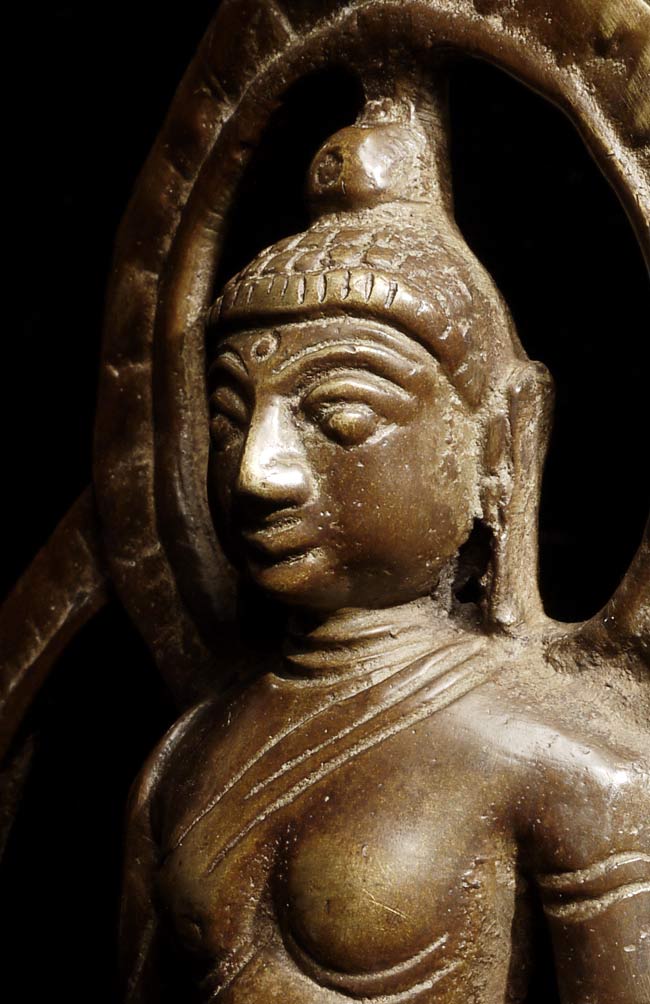 19thC Nepalese Buddha in a much earlier style. Large at 10.75" tall. Lovely folk art.