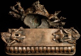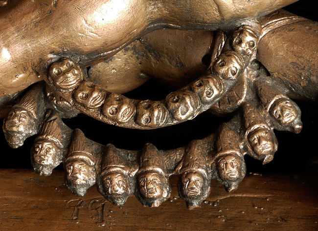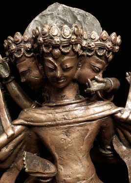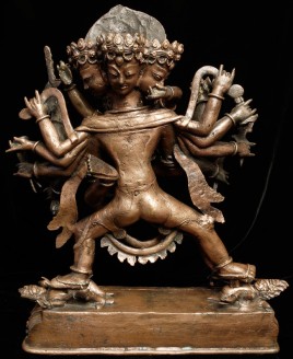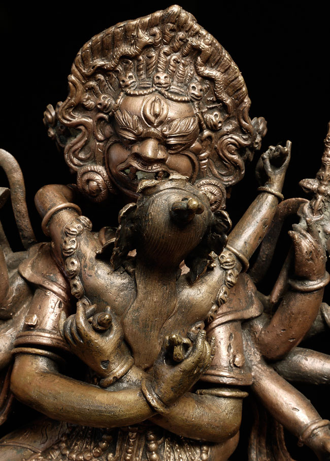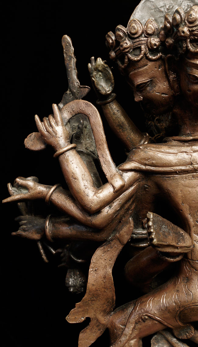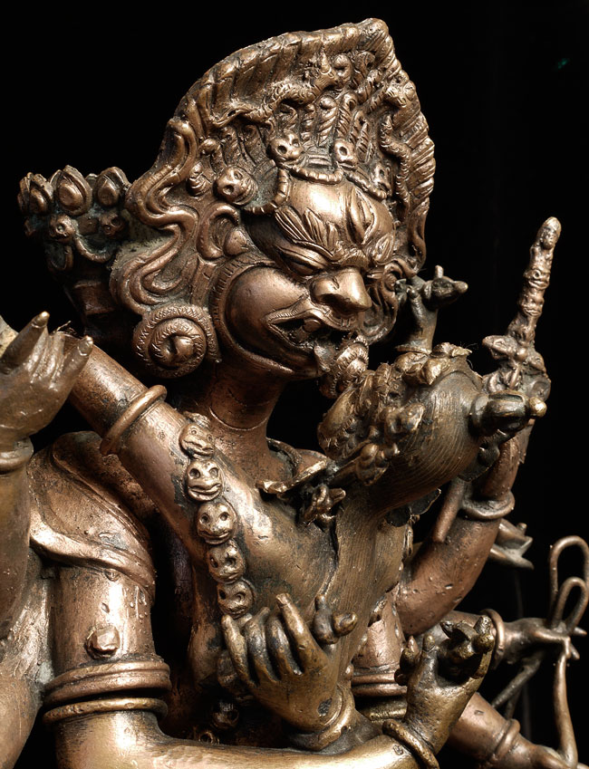 Large vintage vronze Nepalese fierce deity in yab yum with consort. Powerful and complex. Good condition- appears to originally had a piece capping the head. Stands 12.5" tall, 10.5" wide, approximately 5" deep