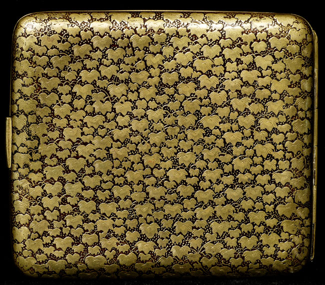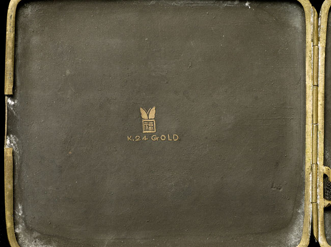 Antique Japanese Komai Cigarette Case- as elaborate and beautiful as they get. Outstanding condition with no losses or significant wear. Singned. Not my usual sort of item, but I couldn't resist. Metal base with gold surface.Size- 3" x 3.25" with a height of .25". 24k gold.
