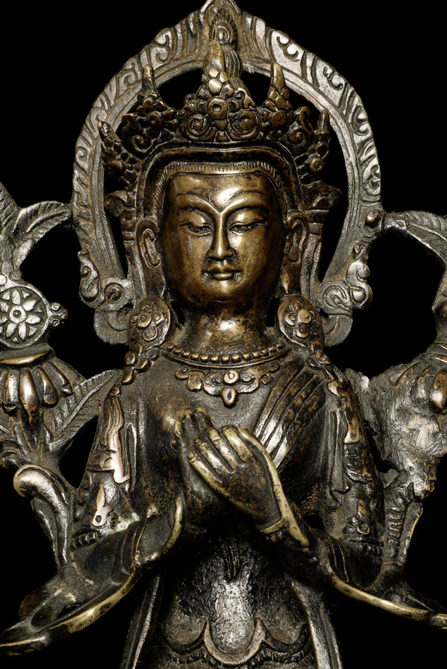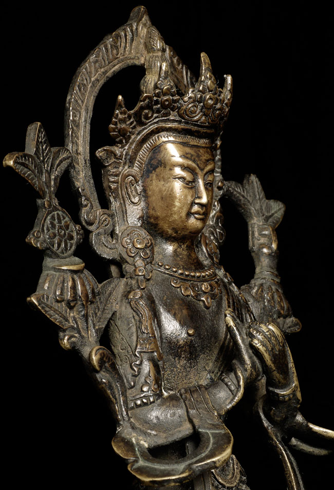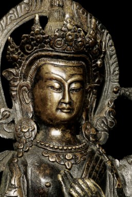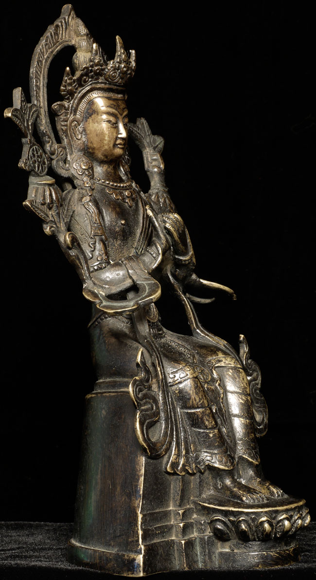 Antique Tibet/Nepal Buddha of the future. Appears to have originally been sealed. Nice size at 8 3/8" tall.