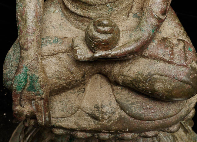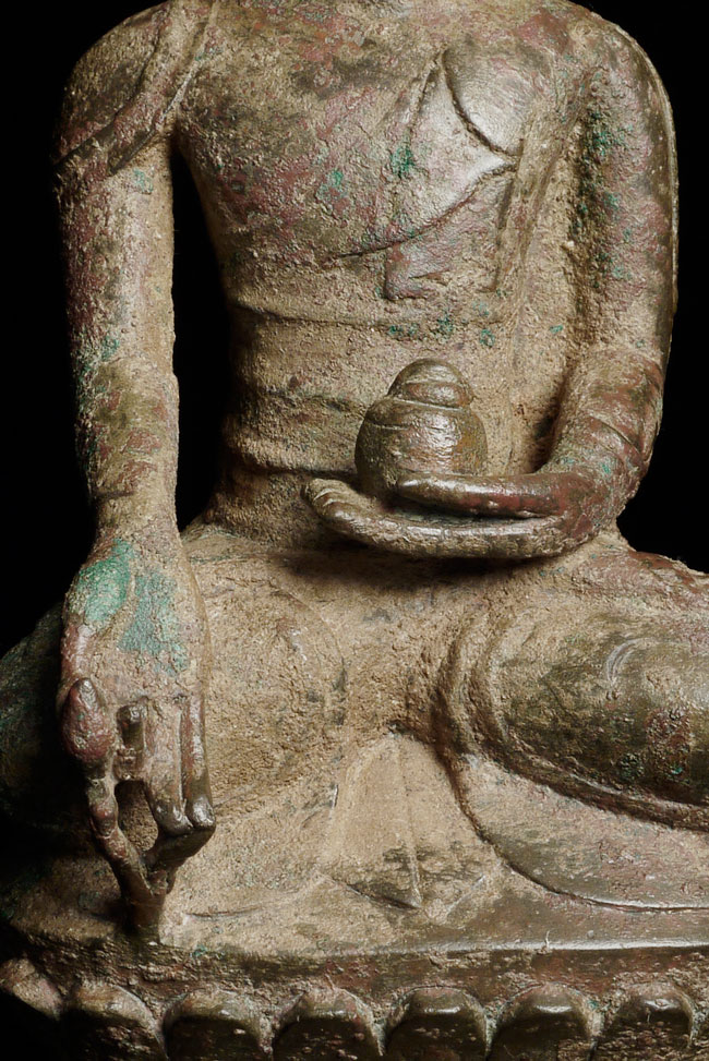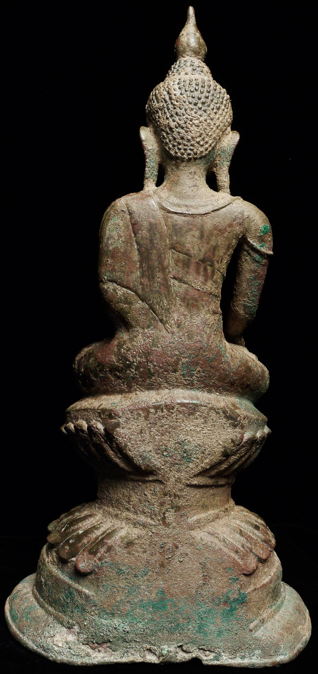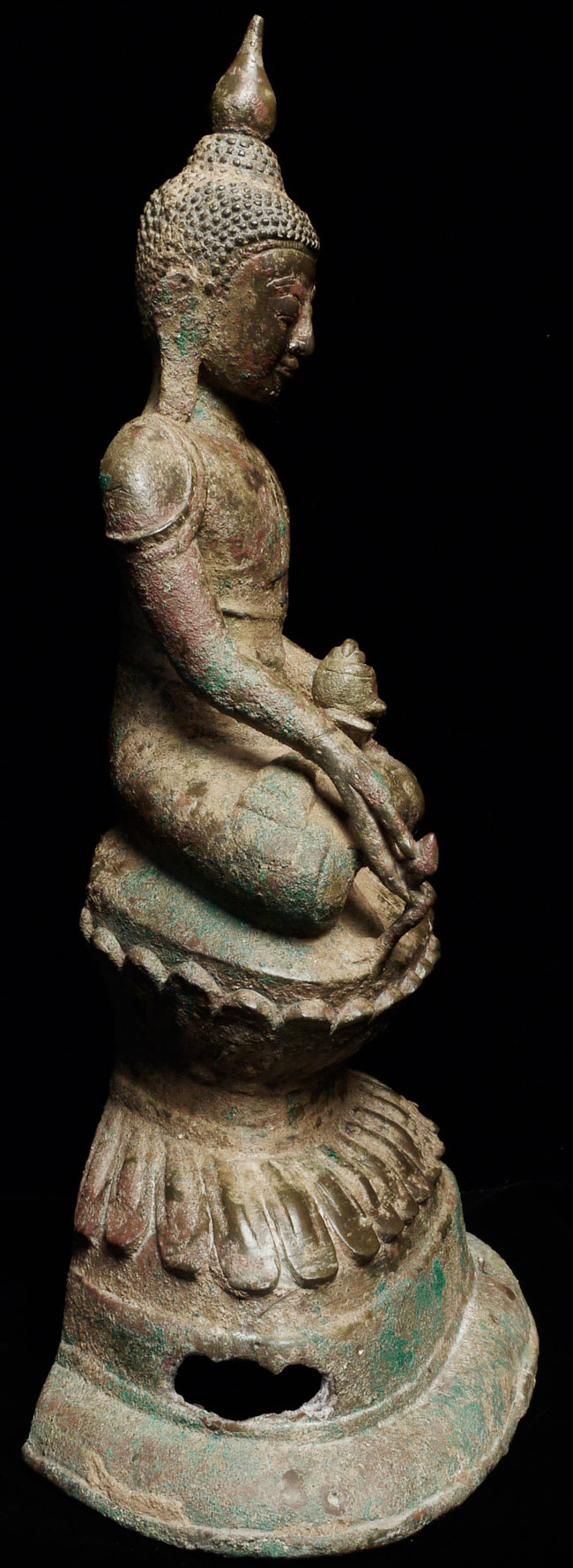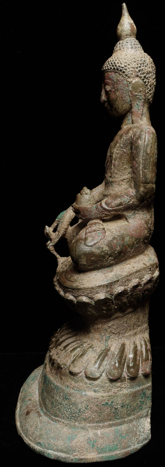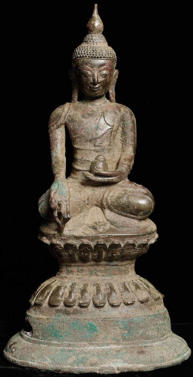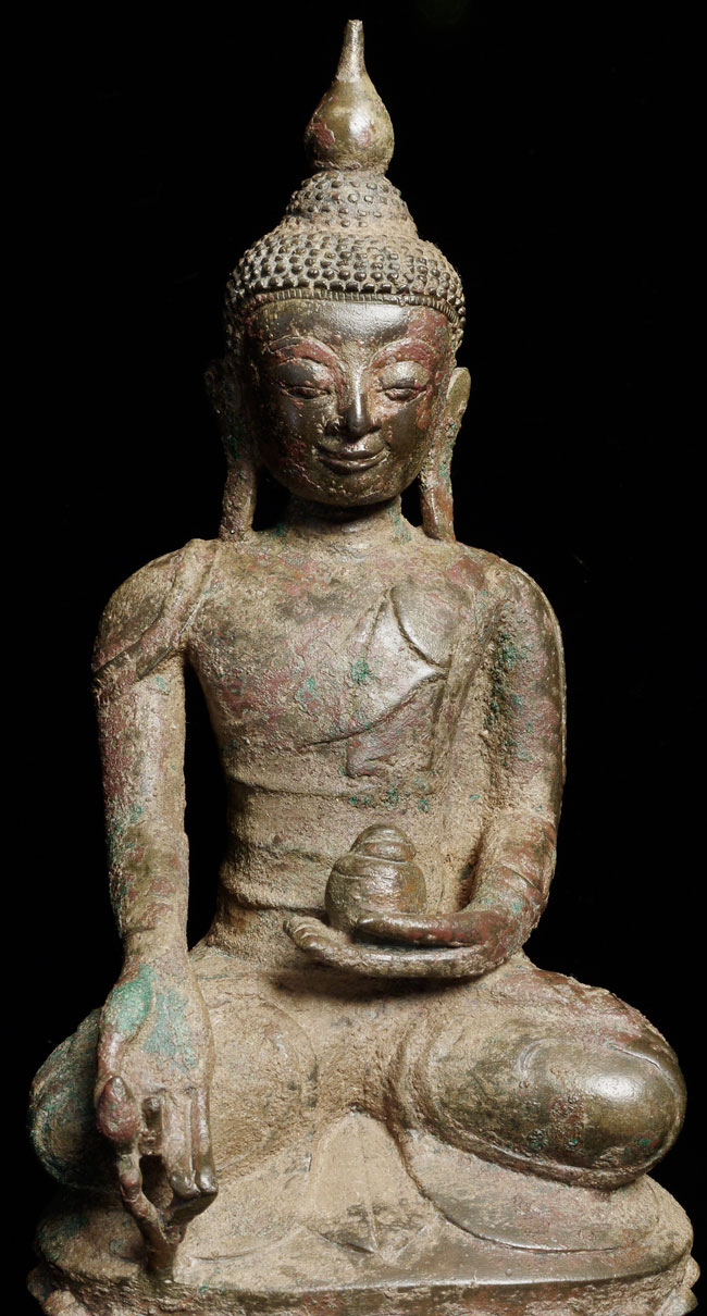 Beautiful 18thC Burmese Buddha with a complex and beautiful burial patina. Delightful face. Good size at 12" tall