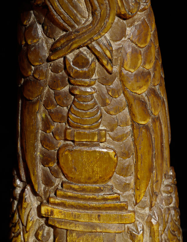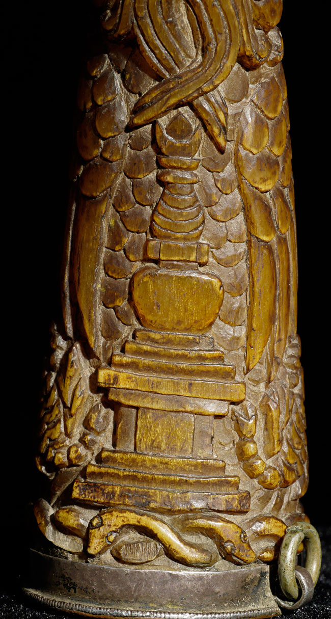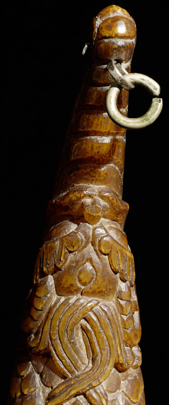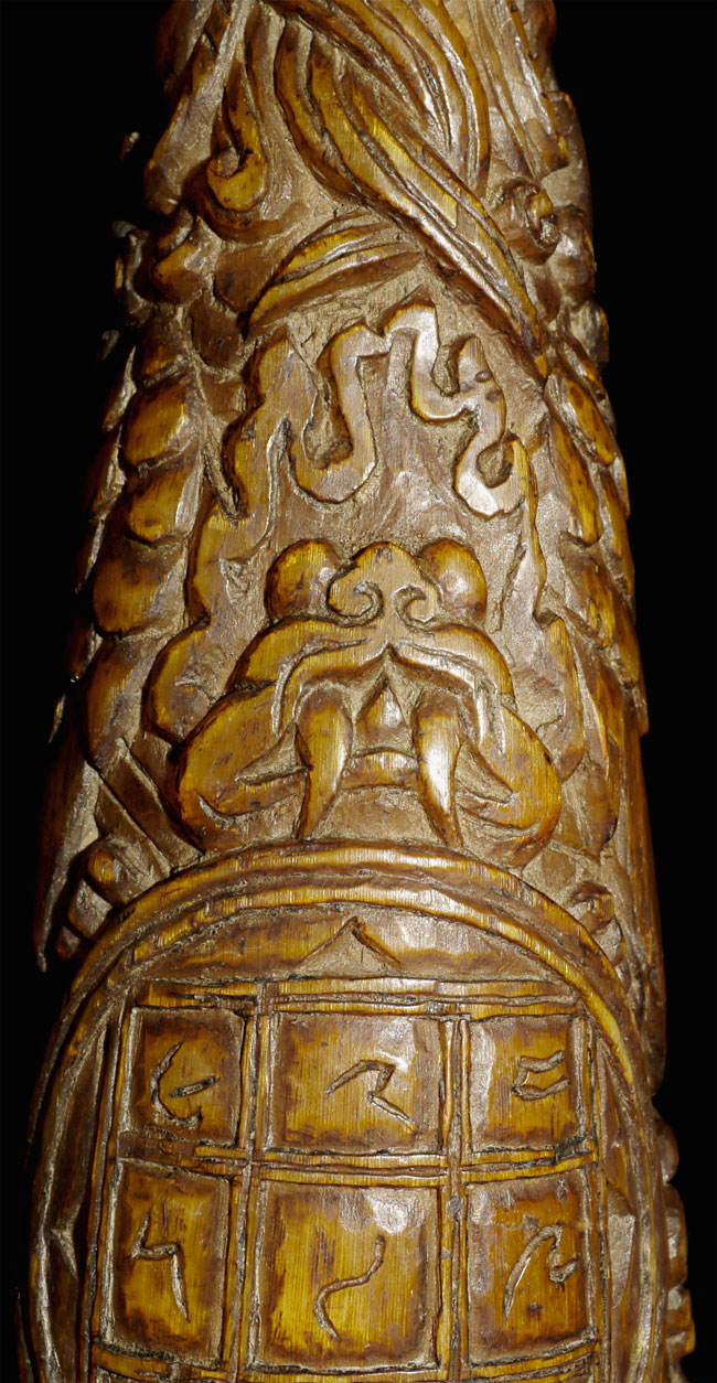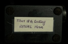 18thC supremely beautiful Tibetan Carved Horn. Beautiful patina and great finesse to the carving. 6.75" long, bottom has diameter of 1 7/8"