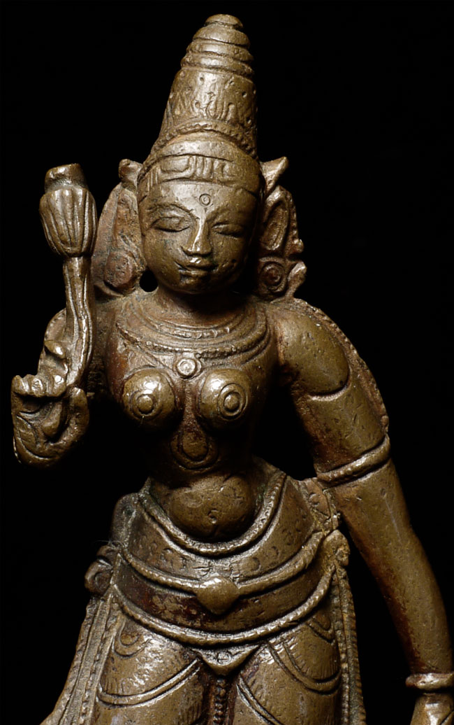 Antique Indian Hindu Goddess with a serene, joyful countenance. Stands proudly at 4.5" tall