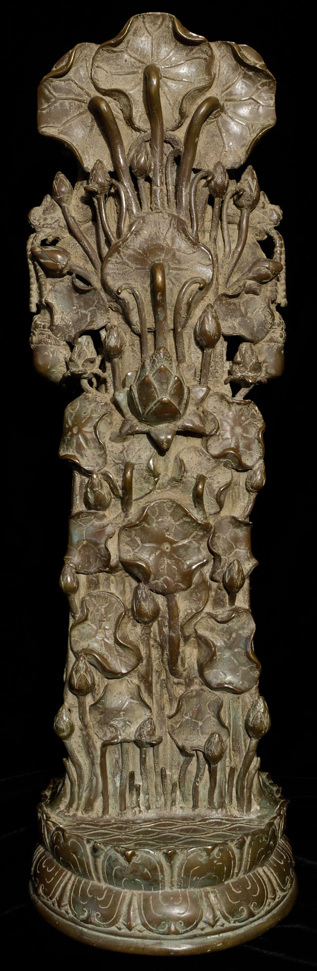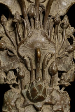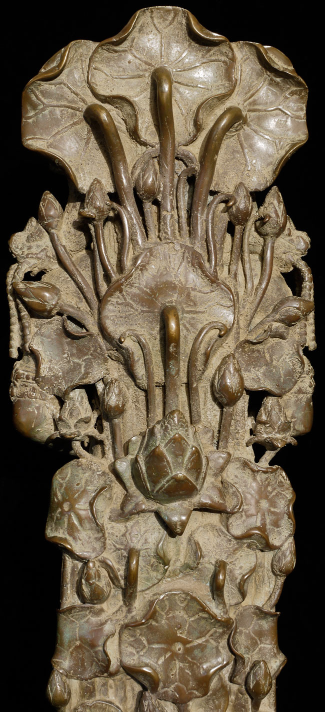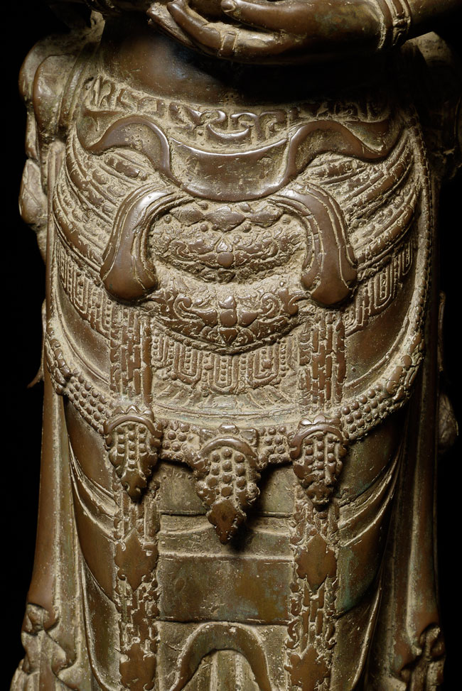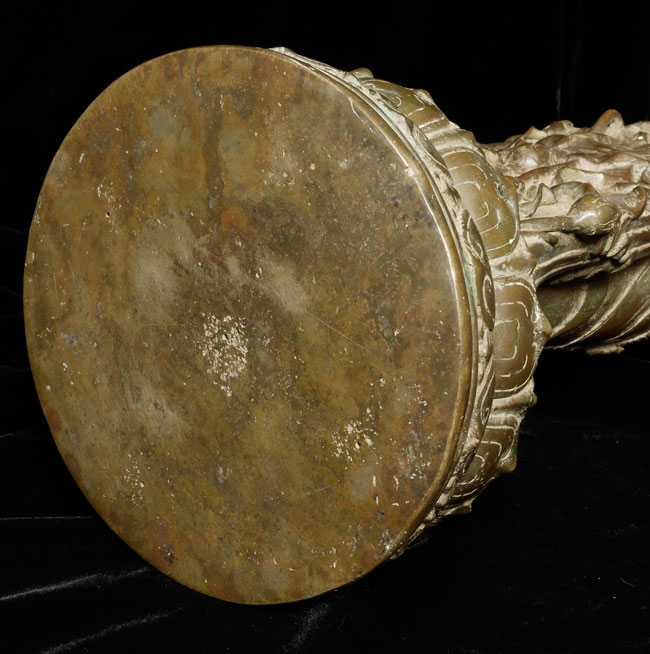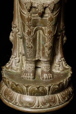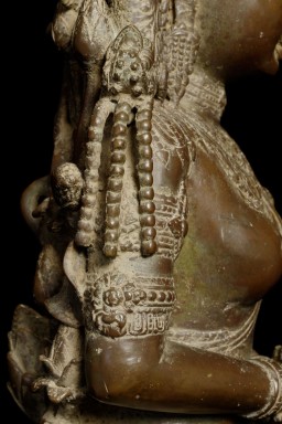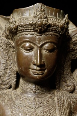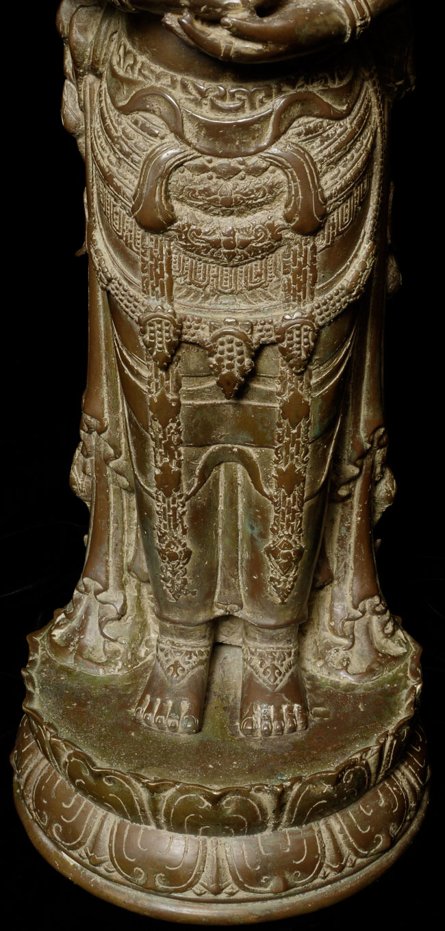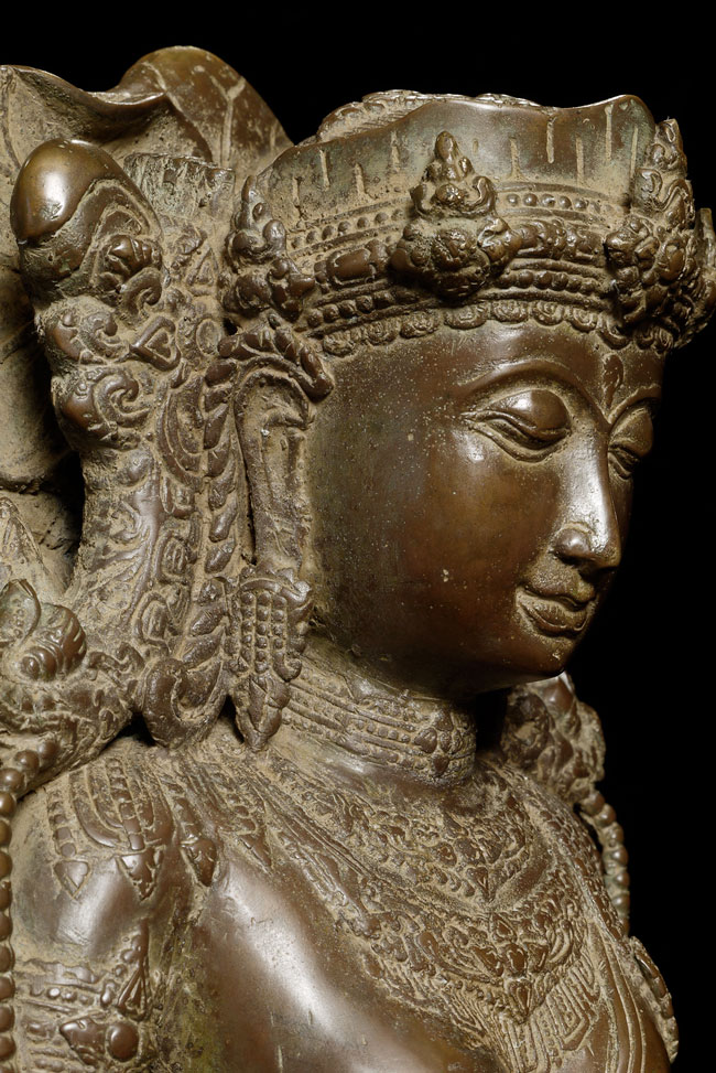 Spectacular Indonesian Goddess with unique and beautiful detail, especially on the back. Quite large at 22.5" tall, and very heavy. I think the actual figure is solid cast- not sure about the base. Based on the patina. casting style and quality, along with the look of the underside indicate age, though I do not know how to date this piece. Probably 19th century or earlier. Exquisite!