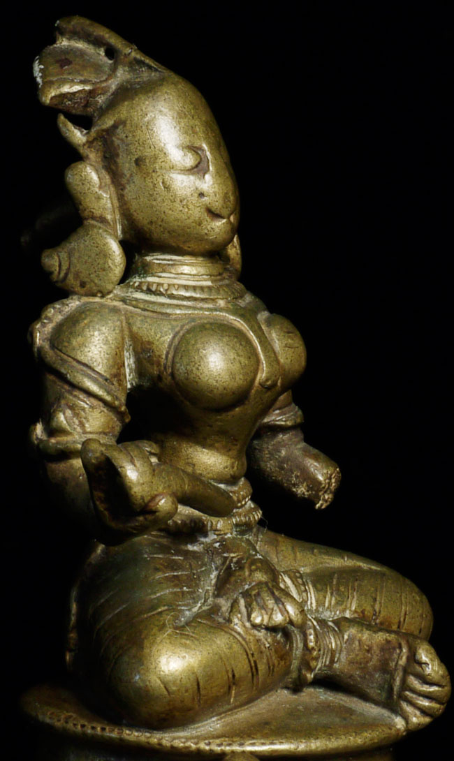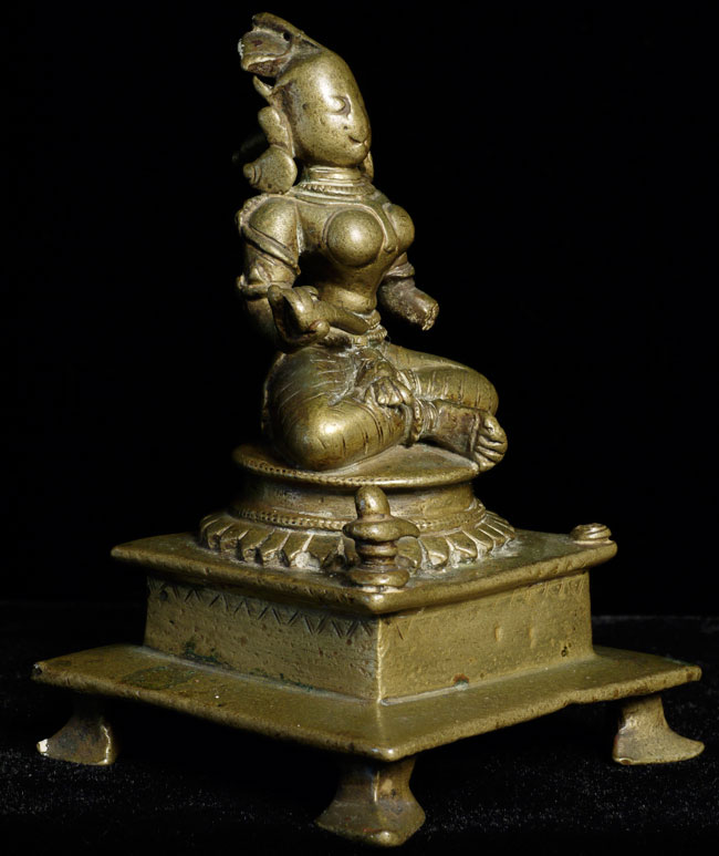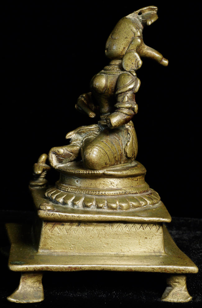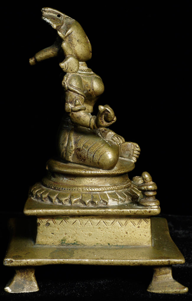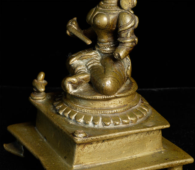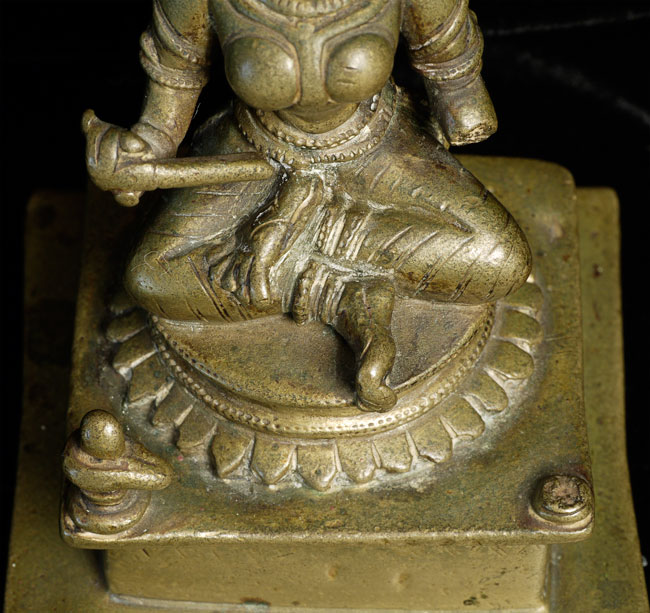 Antique Hindu figure. Beautiful ritual wear. Great finesse to the sculpting and casting. 3.5" tall, bottom is approximately 2.25" square. Has very good age.
