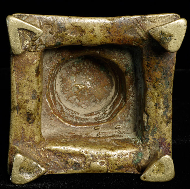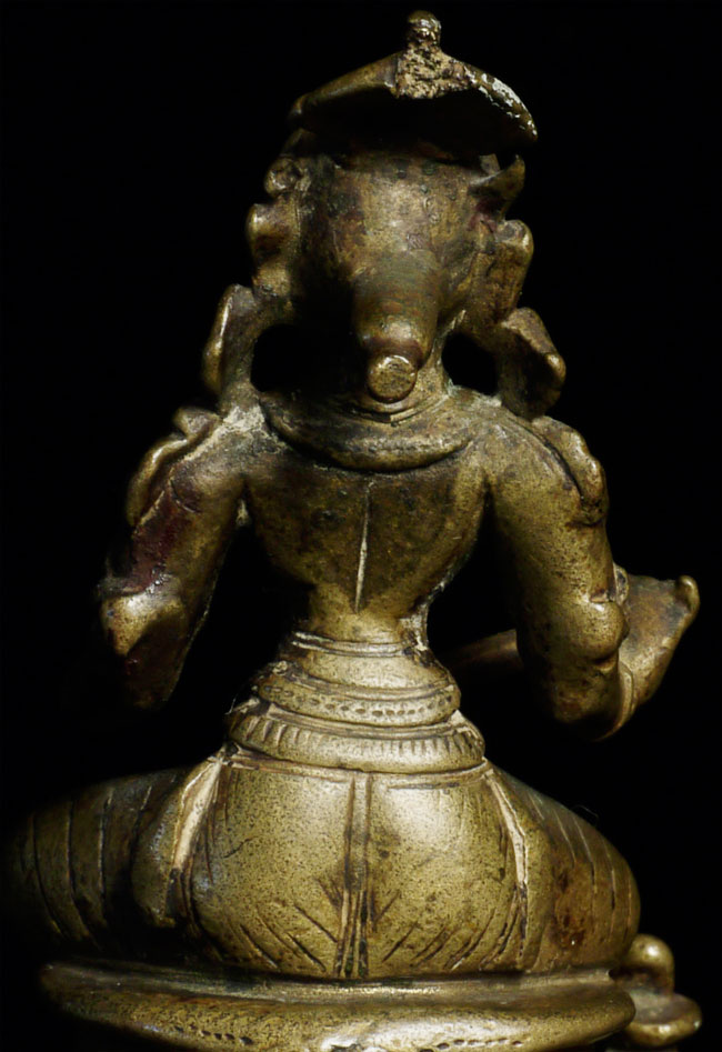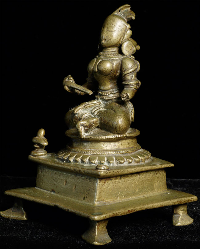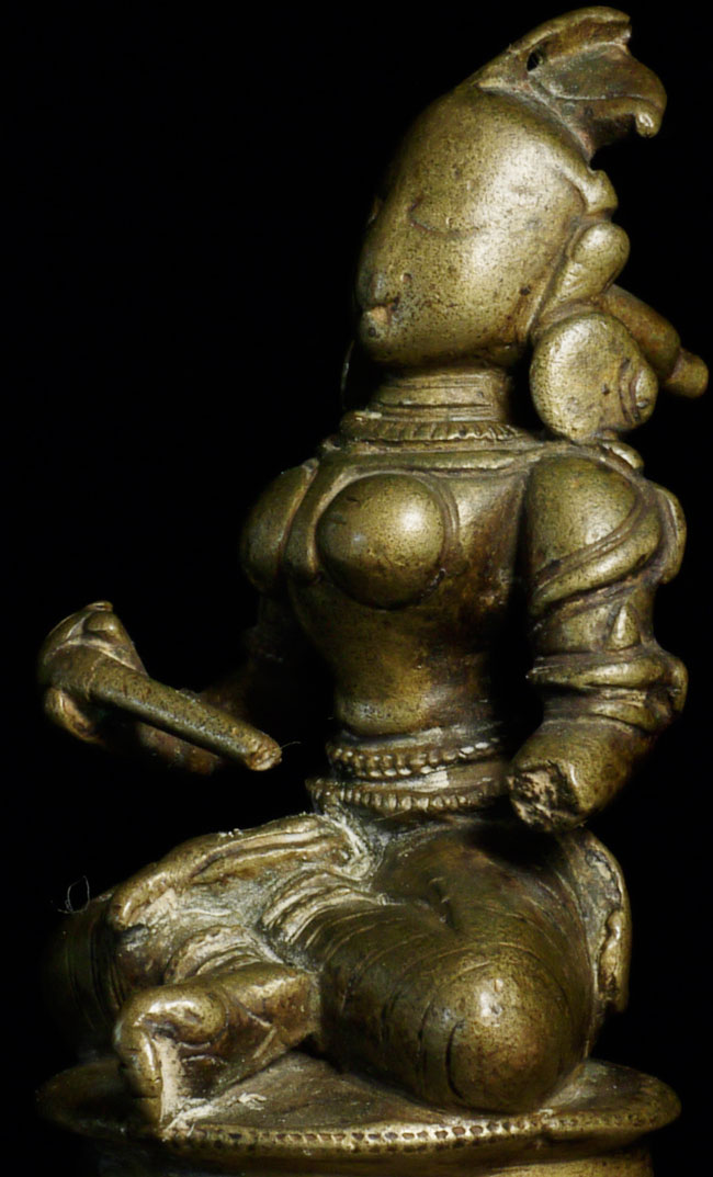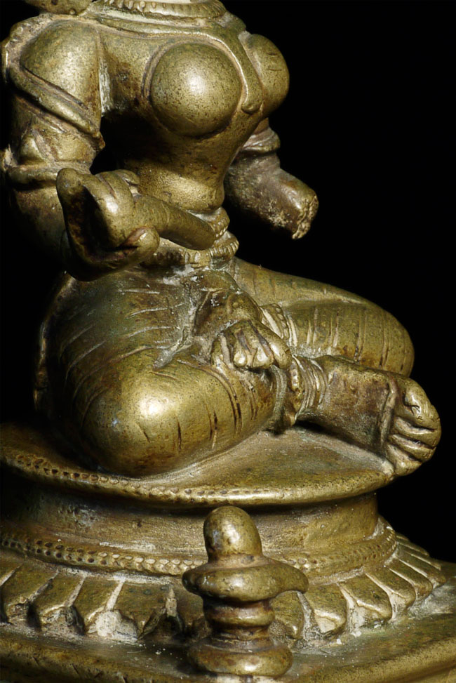 Antique Hindu figure. Beautiful ritual wear. Great finesse to the sculpting and casting. 3.5" tall, bottom is approximately 2.25" square. Has very good age.