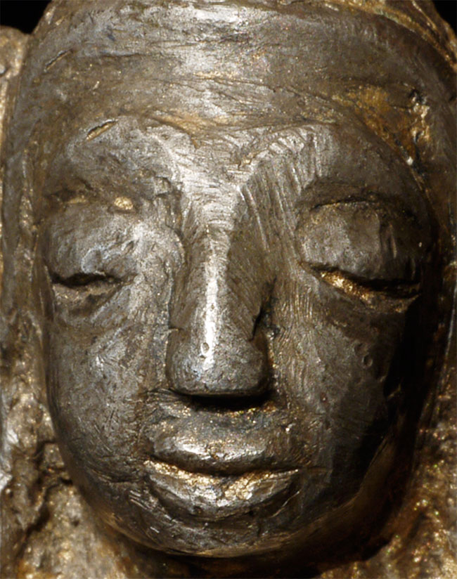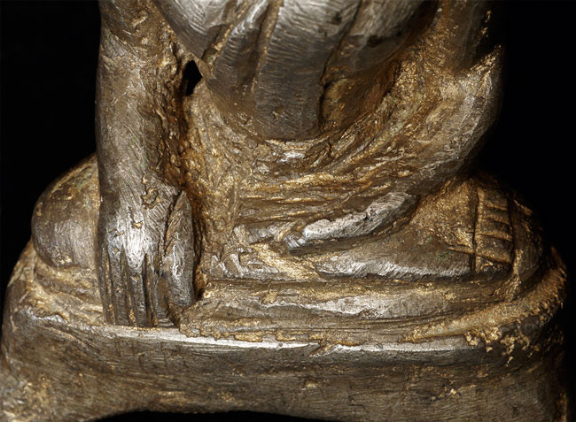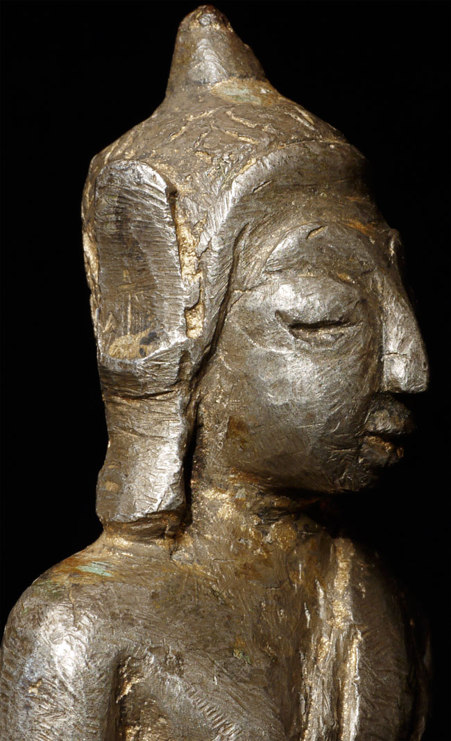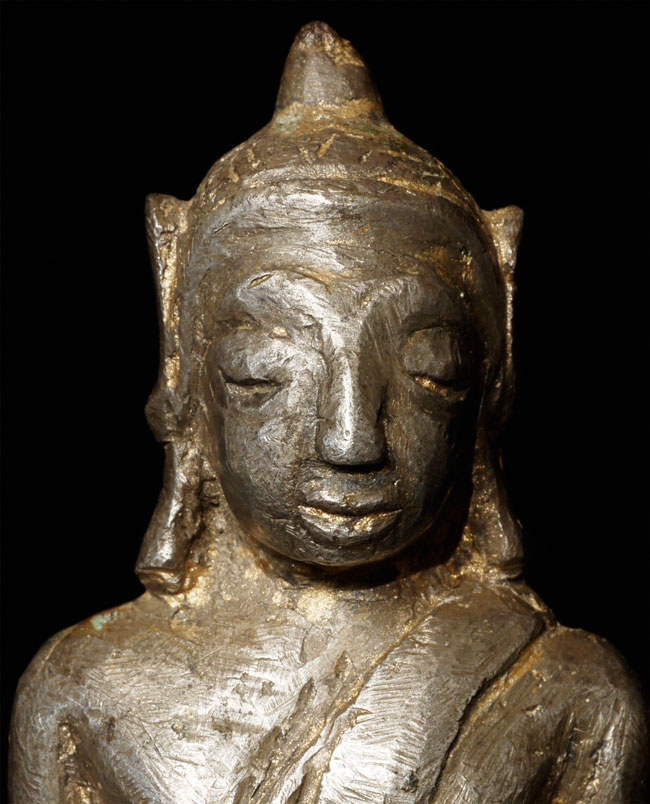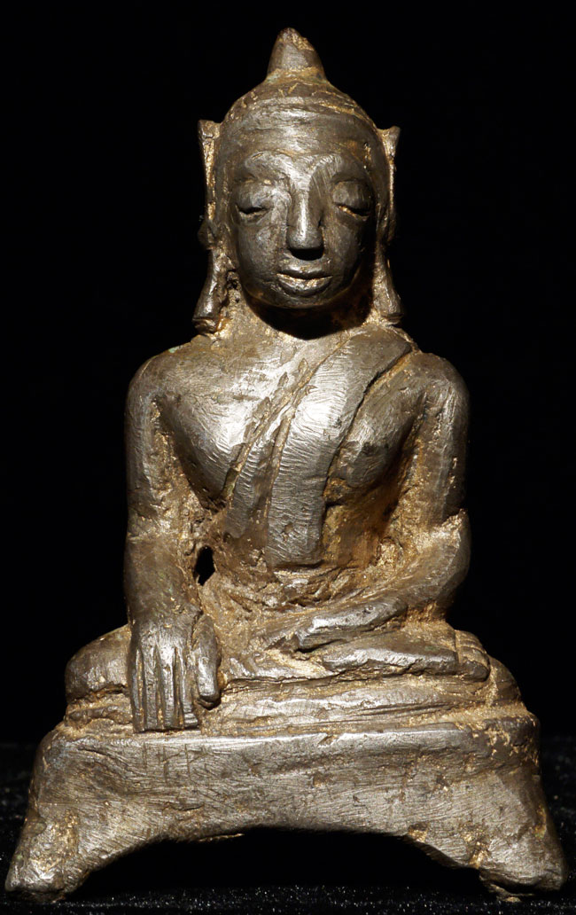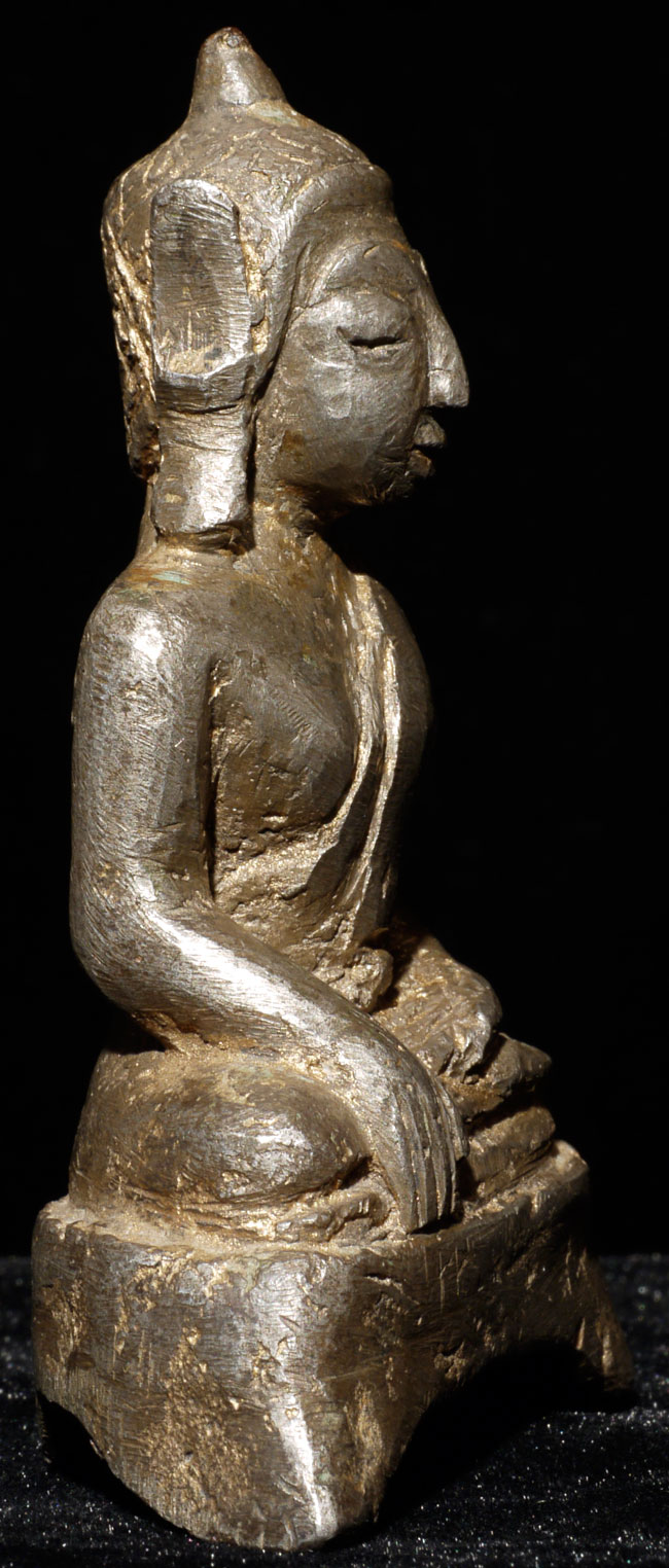 Nice Silver-Bronze Burmese (?) Buddha. Probably 17/18thC. Remains of original gilding. Unusual type. This piece measures 3.5" tall