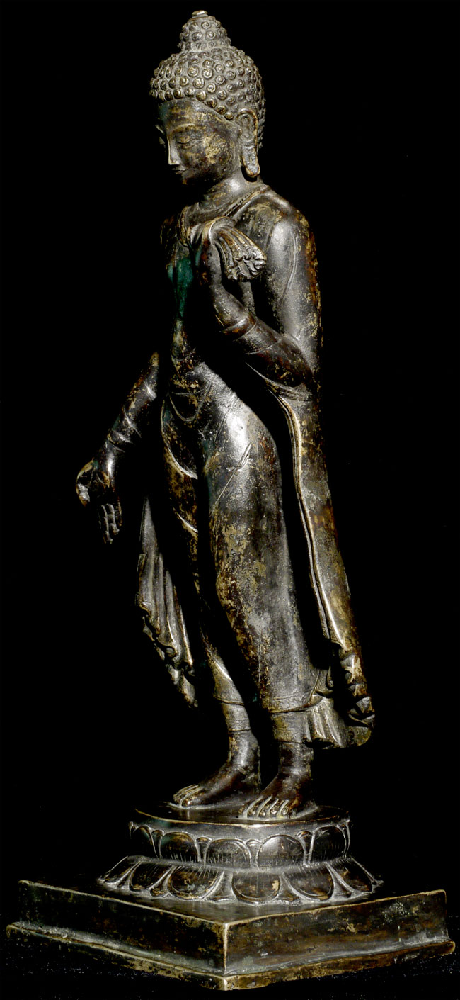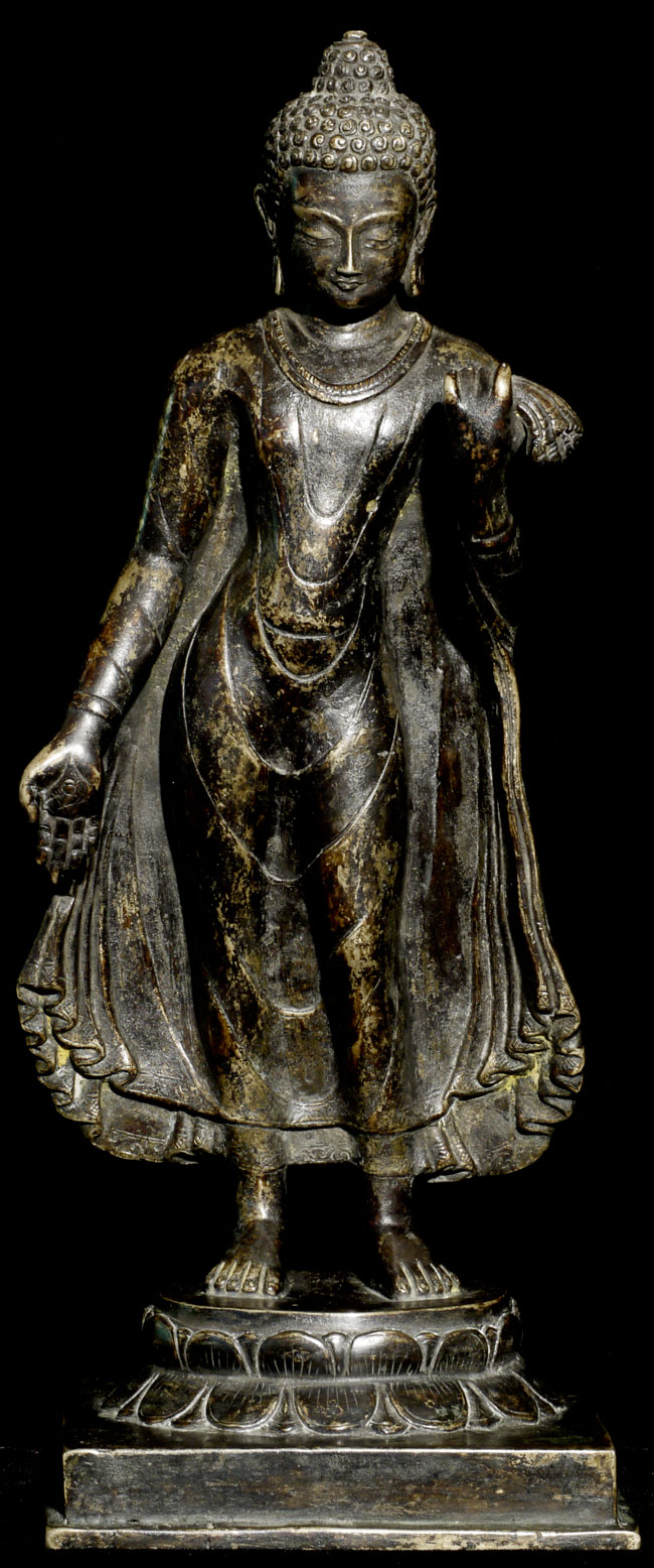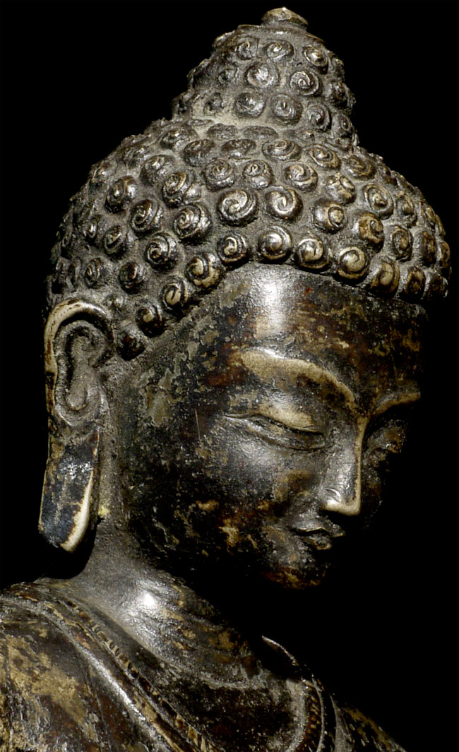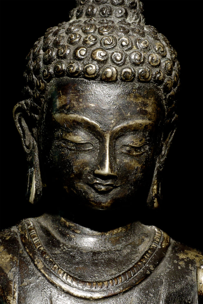Superb antique solid-cast Nepalese Buddha in a 10th century stule. Bottom (not pictured) appears to have originally consecrated in a Tibetan style. Nicest of its type I have come accross in more than 10 years. 12.25" tall