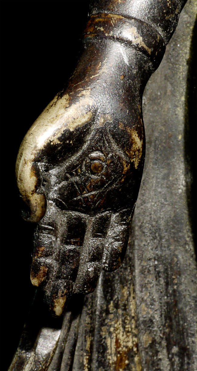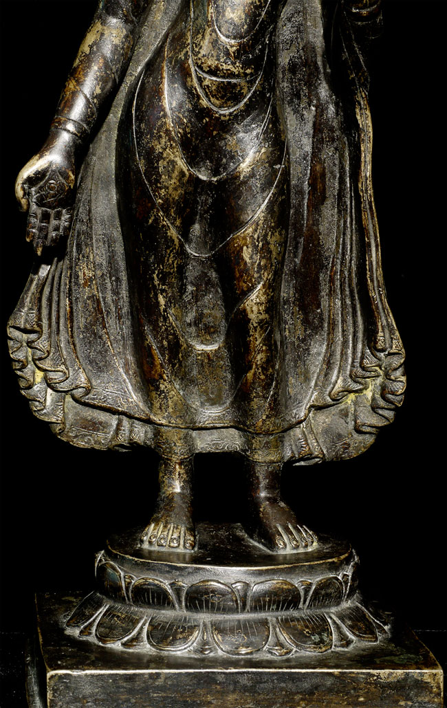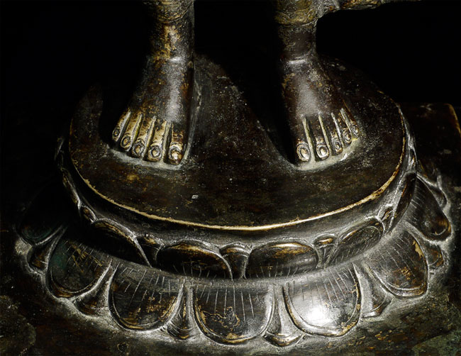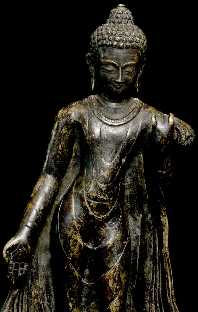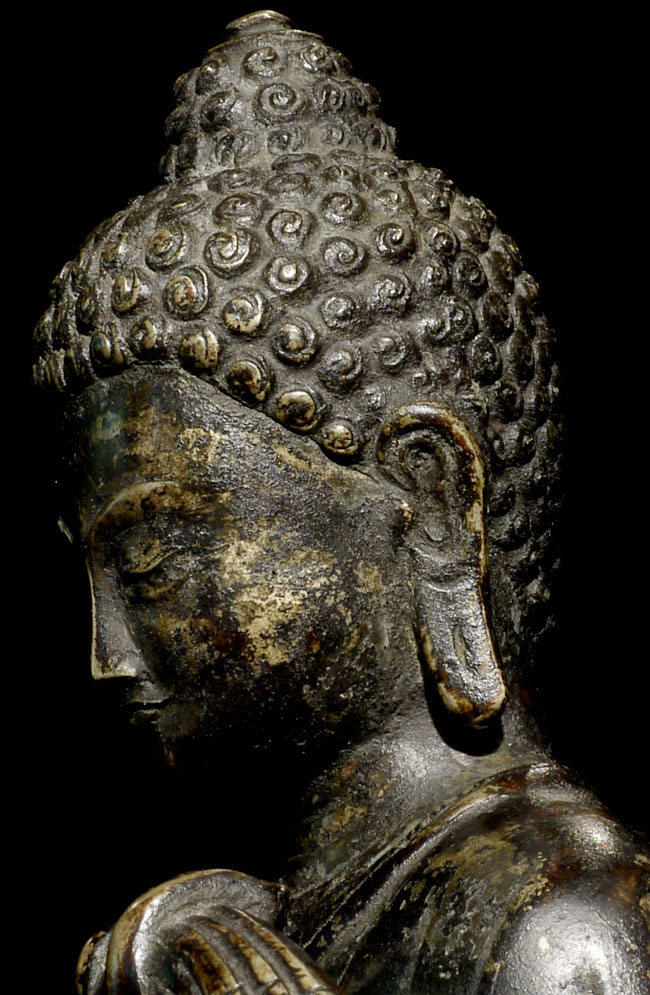 Superb antique solid-cast Nepalese Buddha in a 10th century stule. Bottom (not pictured) appears to have originally consecrated in a Tibetan style. Nicest of its type I have come accross in more than 10 years. 12.25" tall