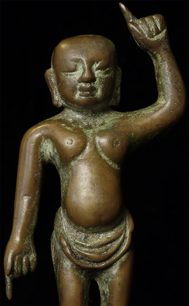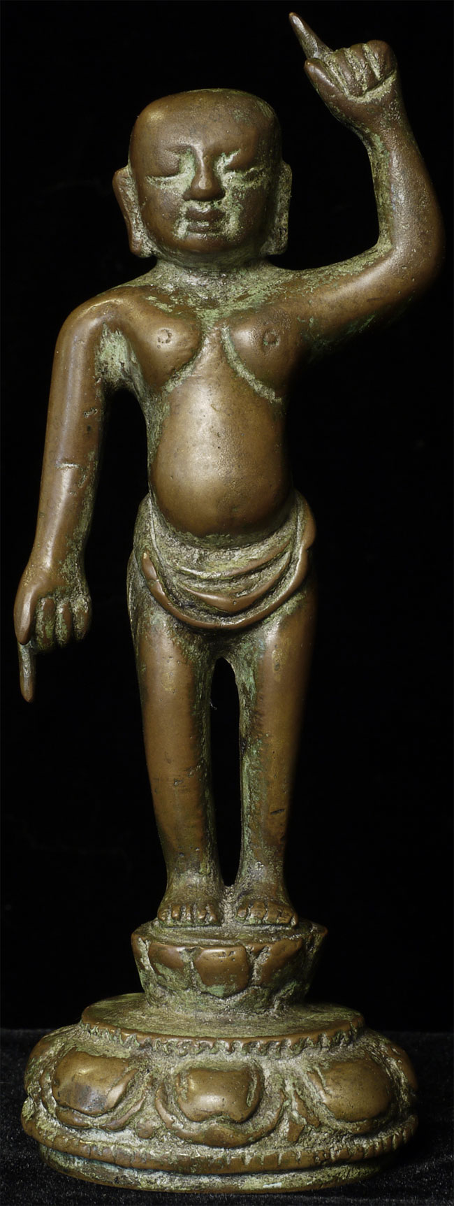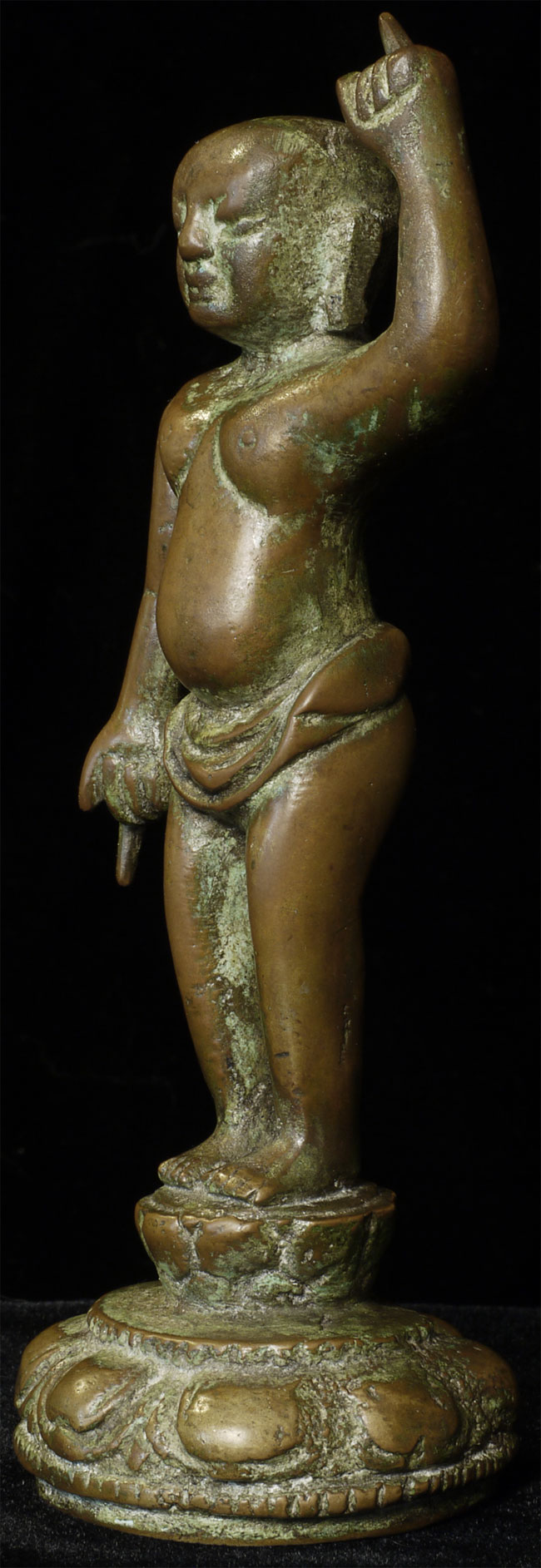 Chinese solid-cast Baby Buddha with deeply serene countenance. He stands 5.75" tall.