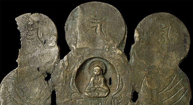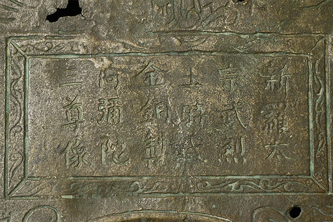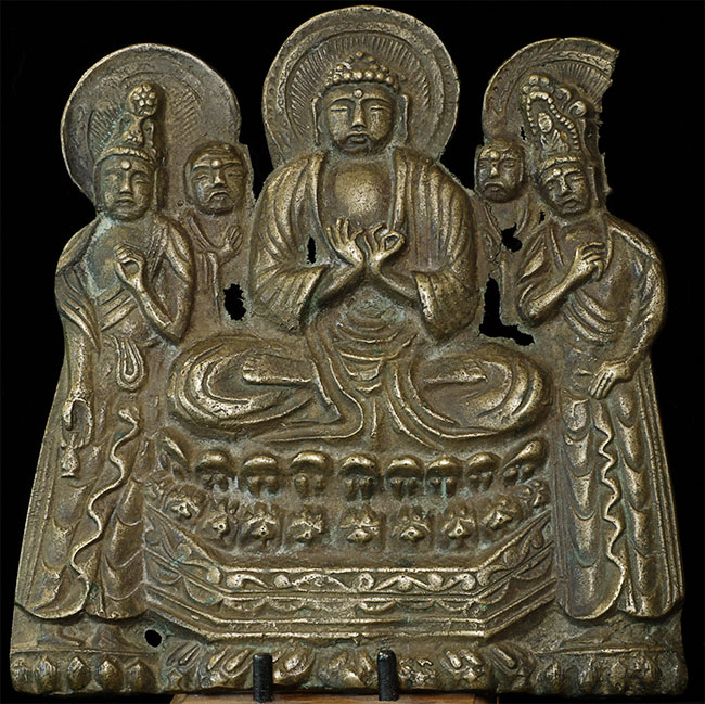 Very old Korean bronze plaque. Brought back to the USA by a soldier during the Korean War in the early 1950's. Some loss and wear, but quite lovely, and very rare. May be quite early. I am unsure how to date. is 7 7/8" tall, 7.5" wide