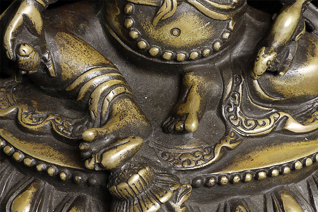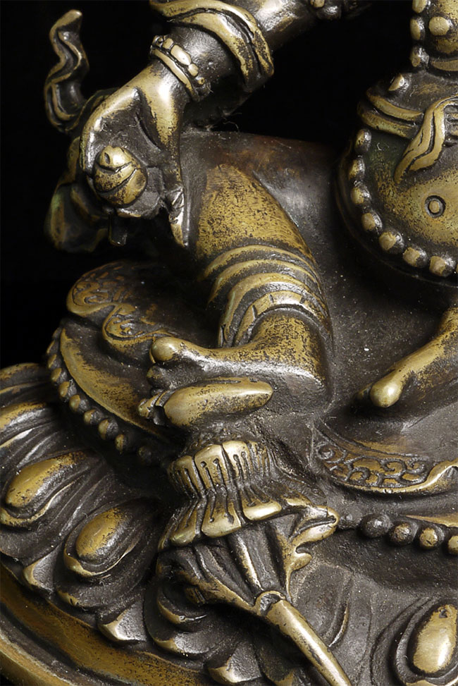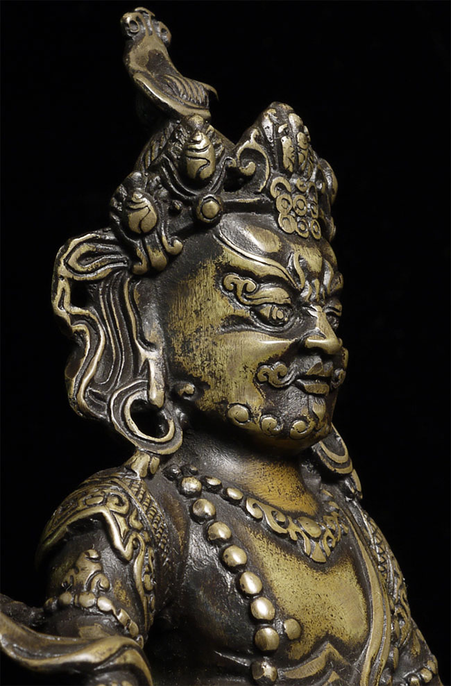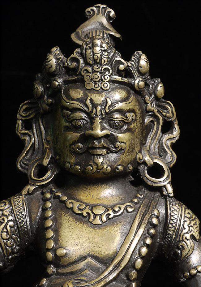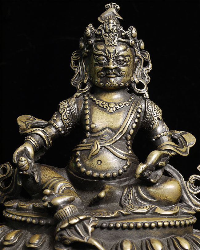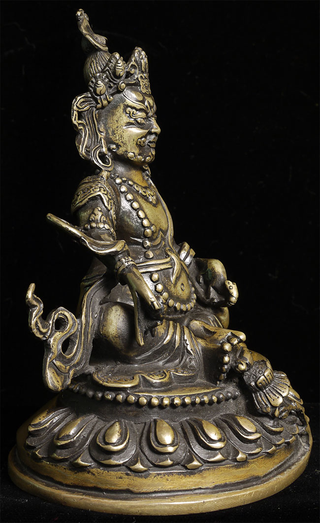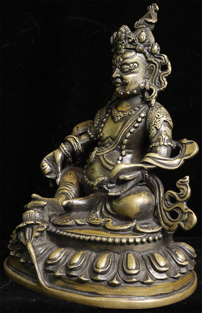 Old/Antique Tibetan Bronze Jambala with his pet mongoose. Nice! Sits 5 1/8"