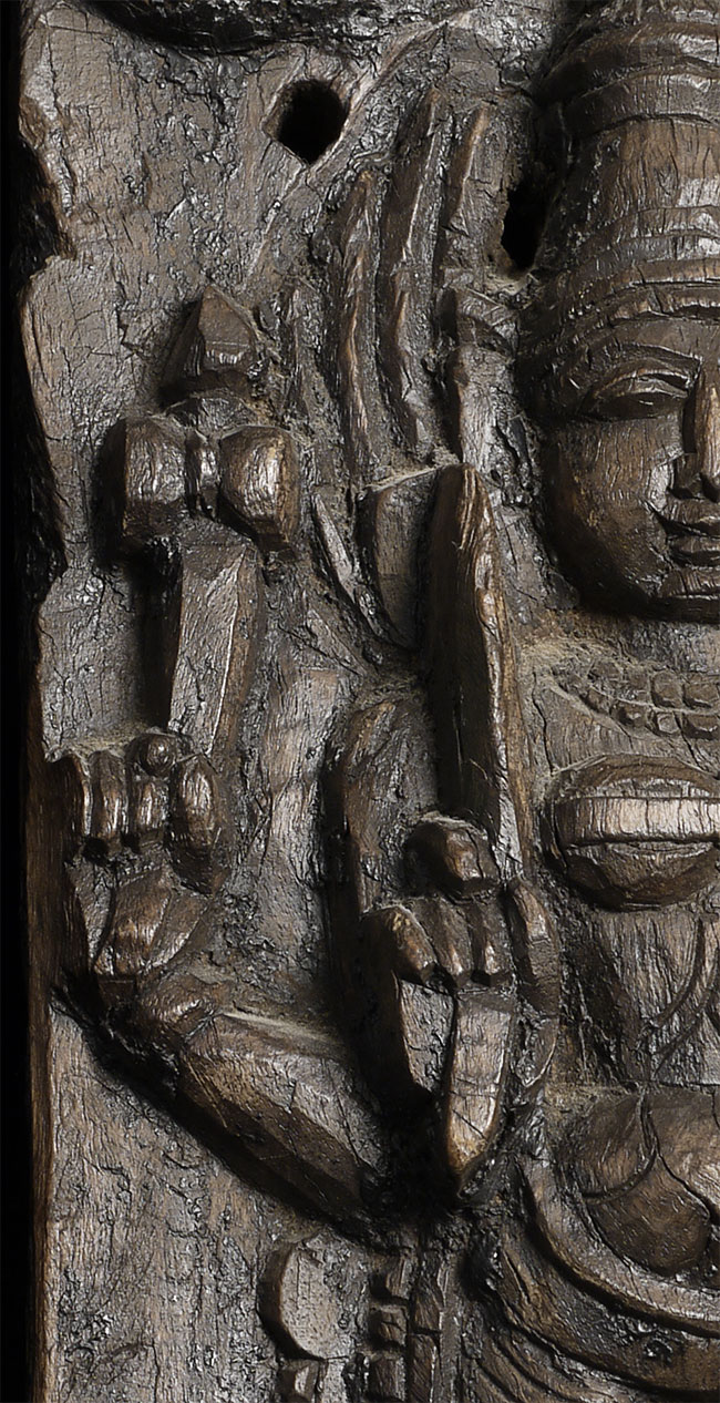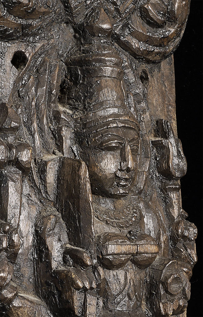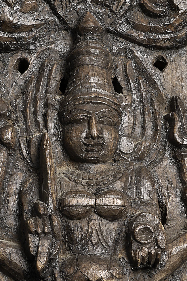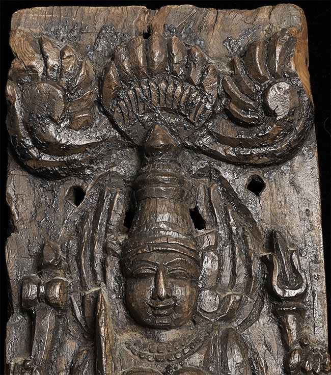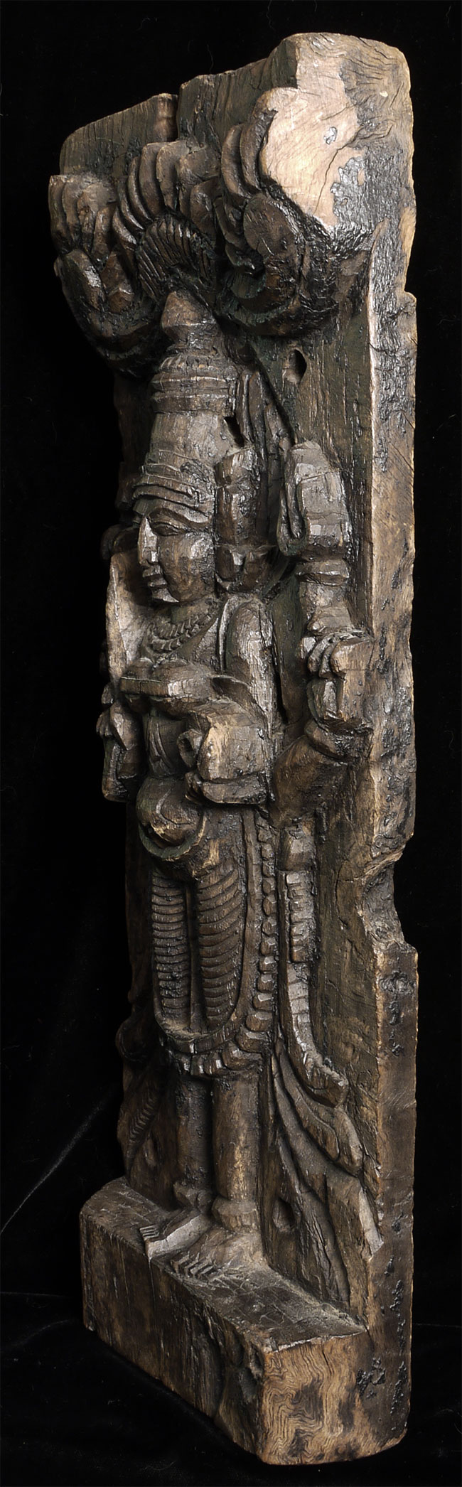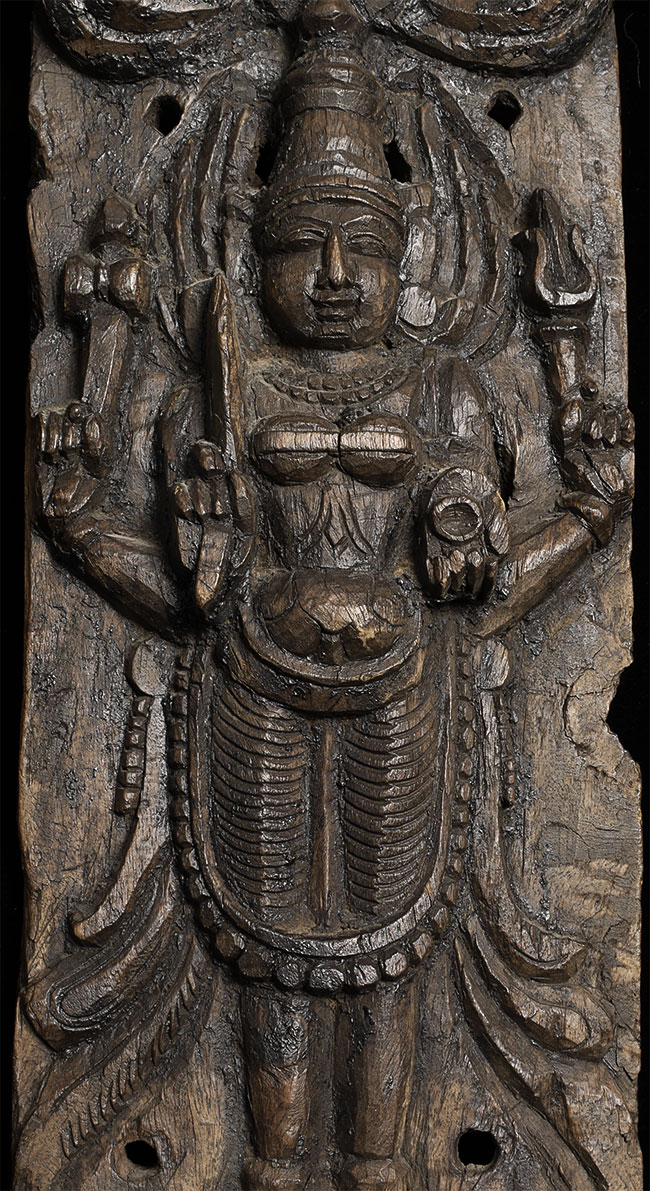Decorative vintage/old Indian carving of a Hindu deity. Stands 19.5" tall, 7" wide