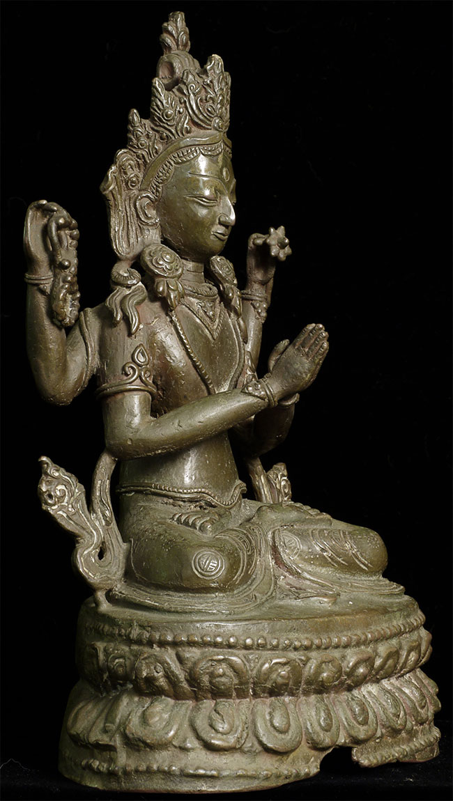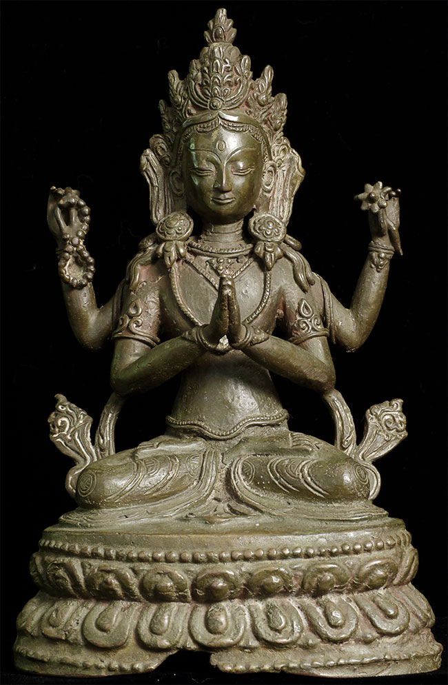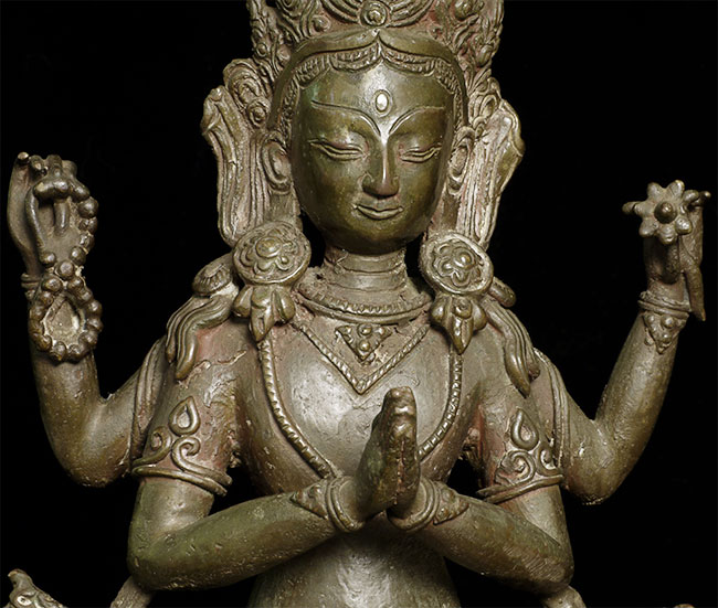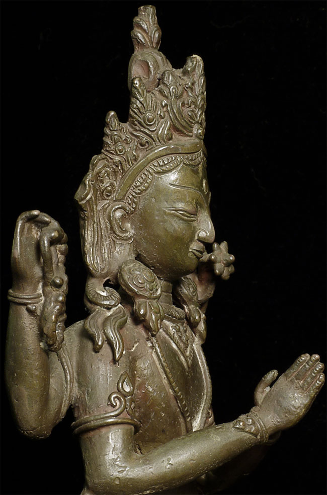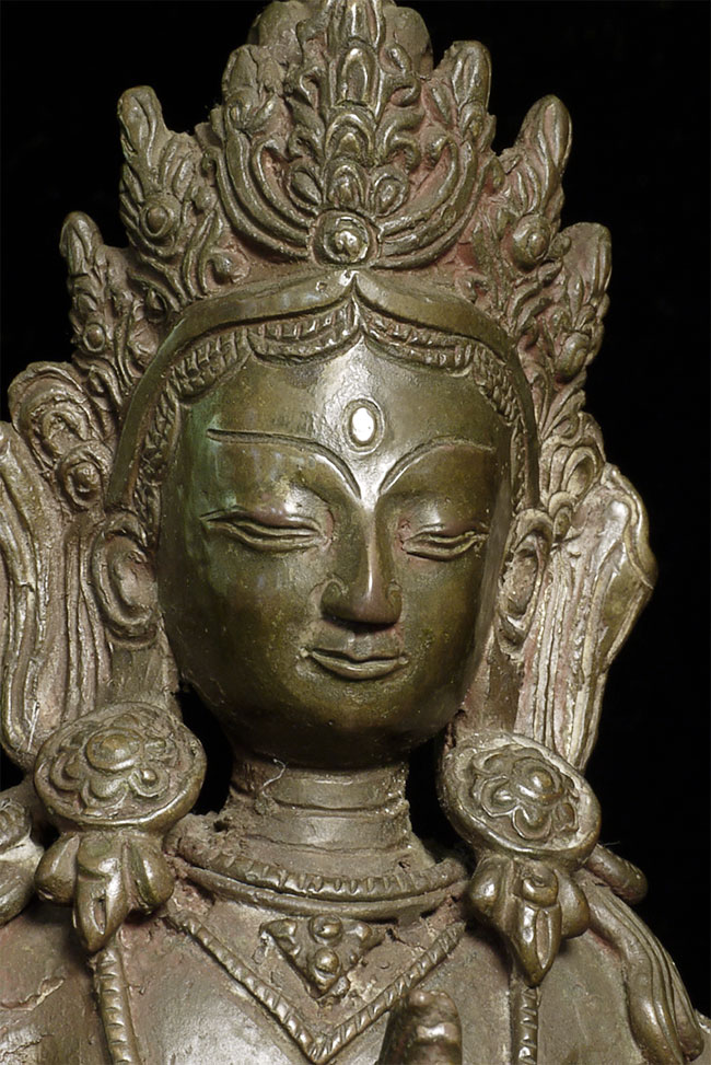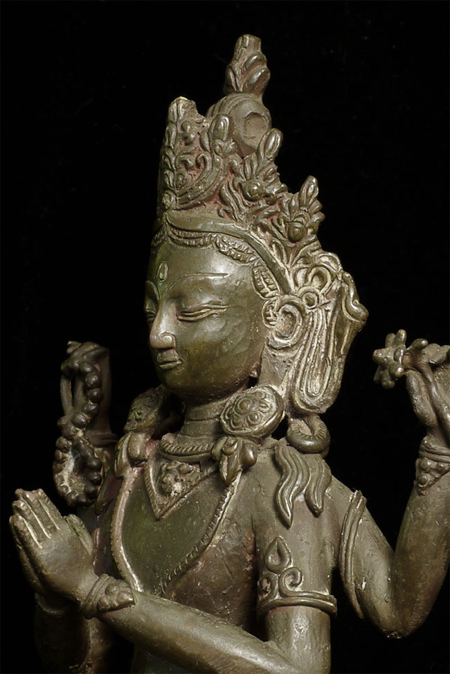 Vintage/Old Nepalese Bronze Bodhisattva. Wonderfully expressive face. Nice size at 8" tall.