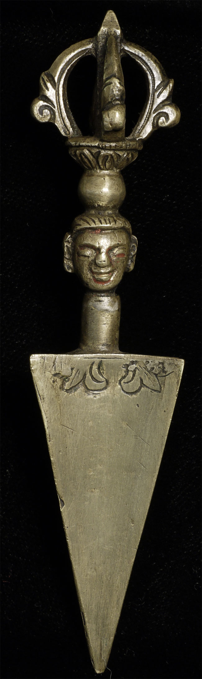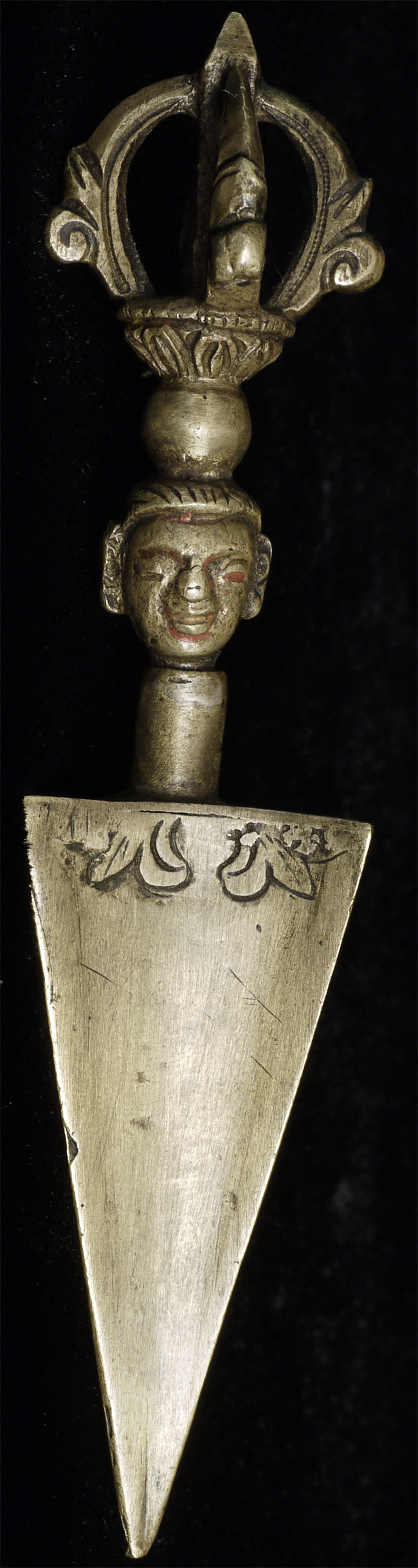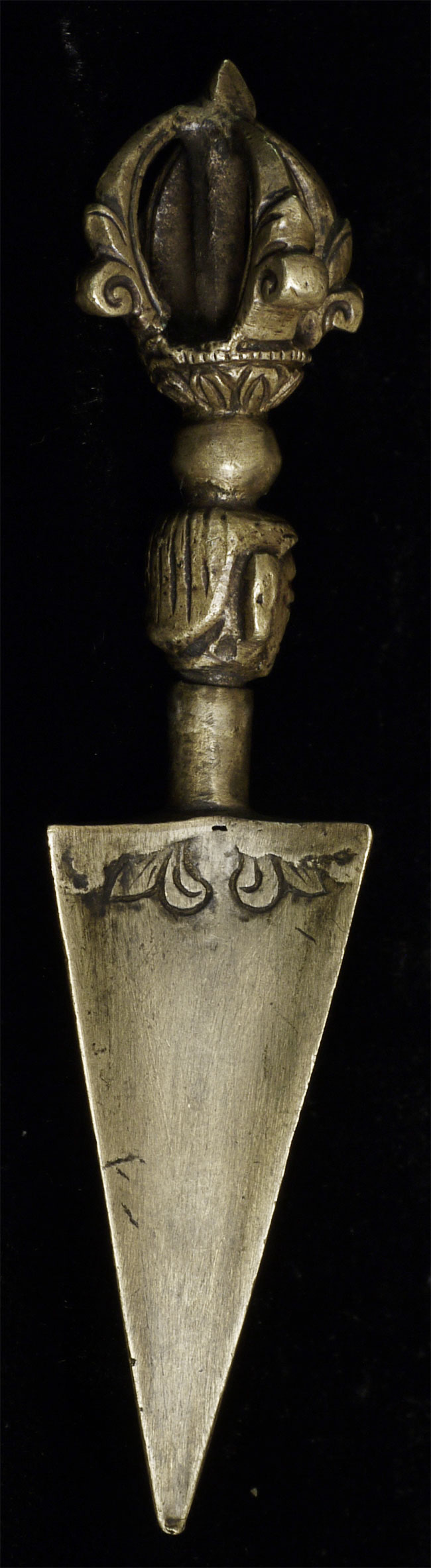 Very uncommon antique bronze Mongolian Phurba. 4.25" long. Only one like this I have come accross.