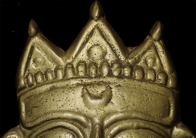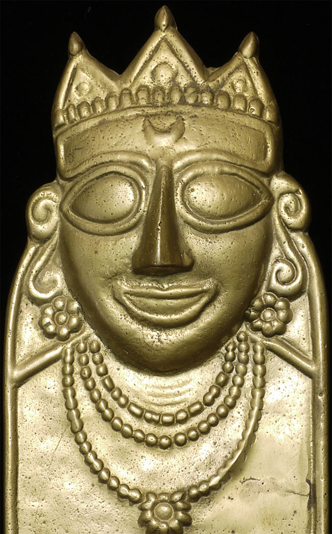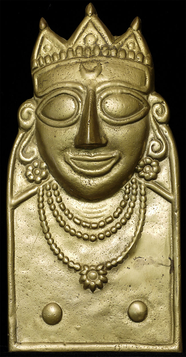 Delightful vintage folk art Hindu plaque is 8.75" tall, 4.25" wide.