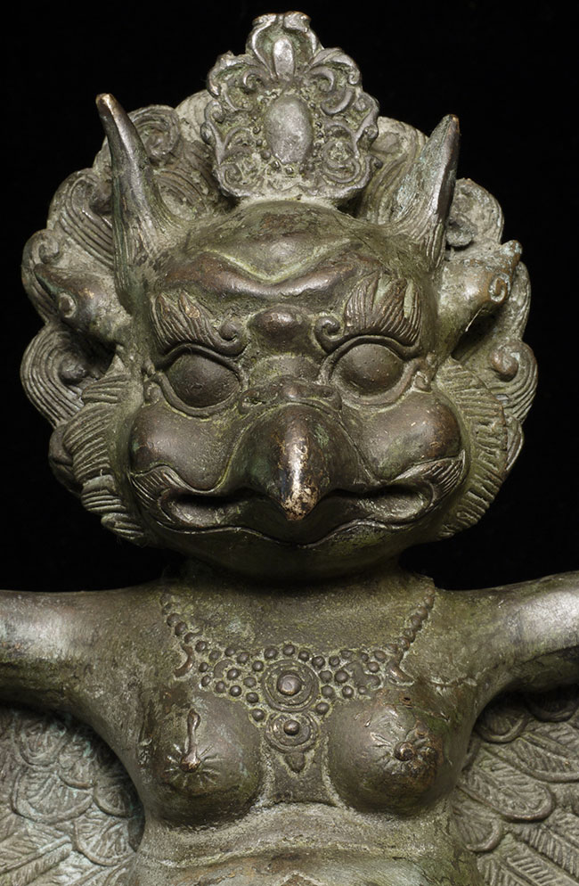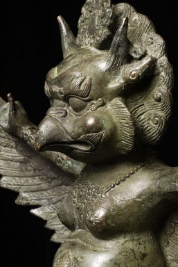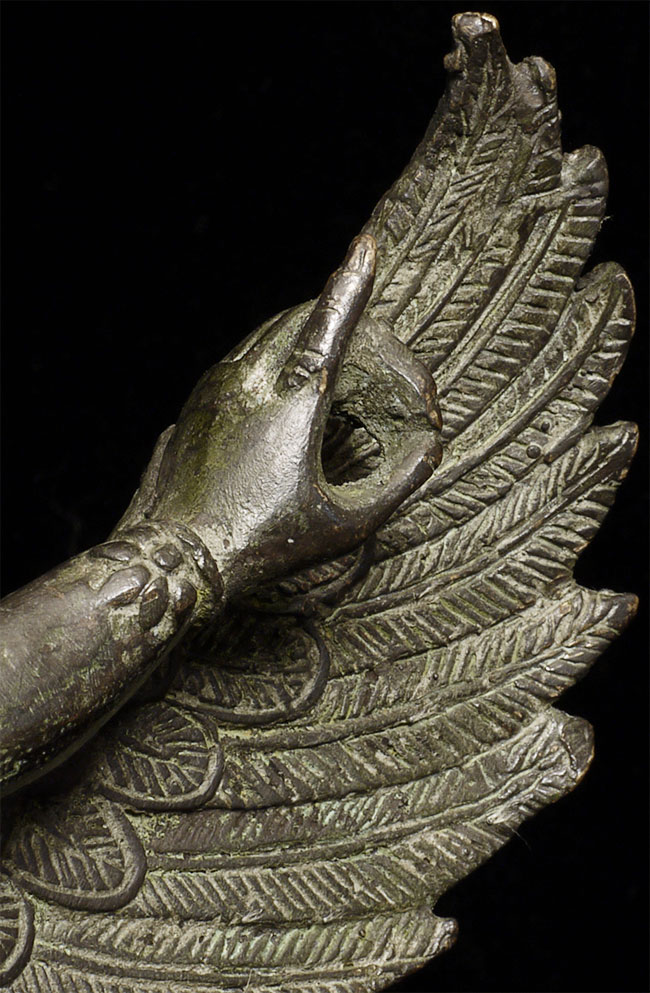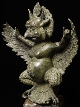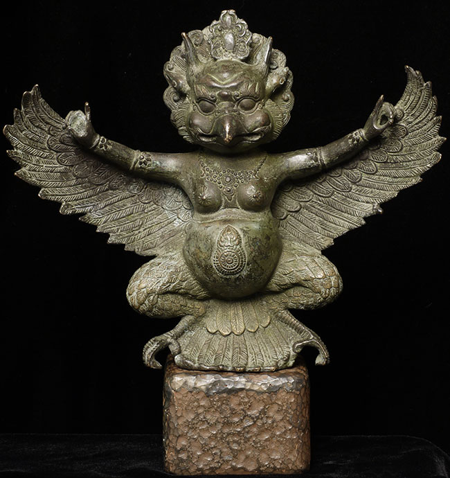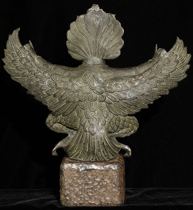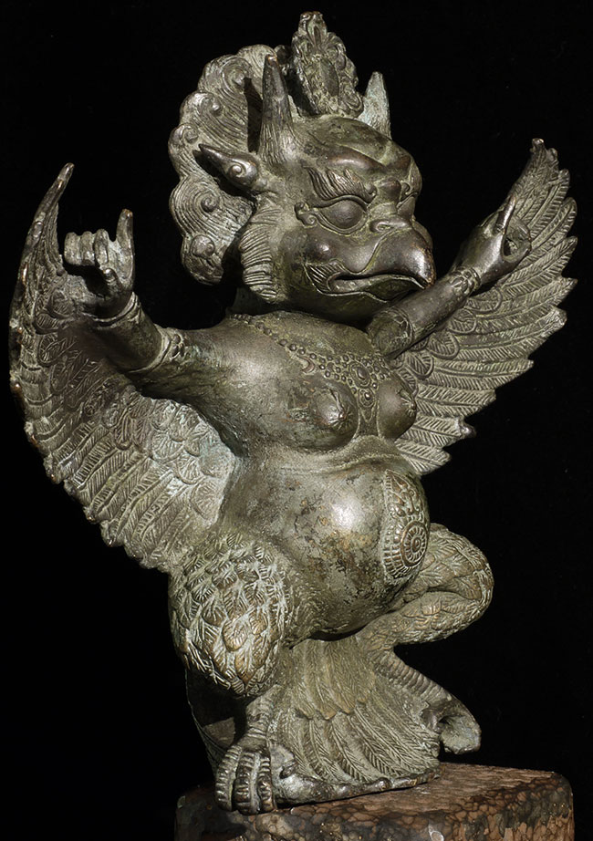 Vintage/Old very spirited Garuda stands 8.5" tall. Optional stand measures 2.25" tall, 3.5" wide, 3" deep. A mystery- I am not sure of precise age or origin.