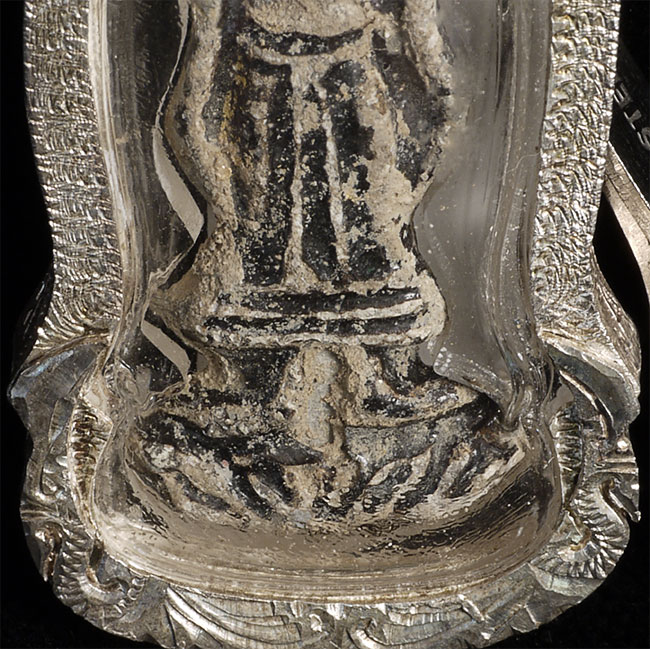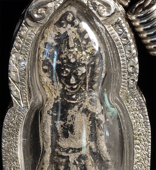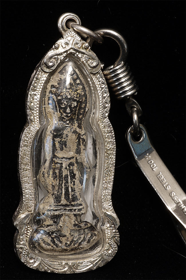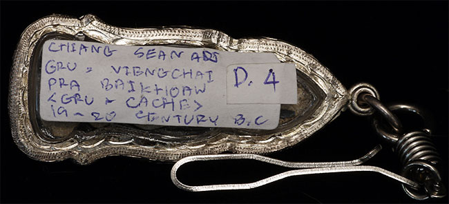 14/15thC Northern Thai amulet in silver and lucite case. Label on back from old collector- date of 19/20 BC (in the Buddhist Calendar). We are now in the year 2554. Amulet is 2.25" tall
