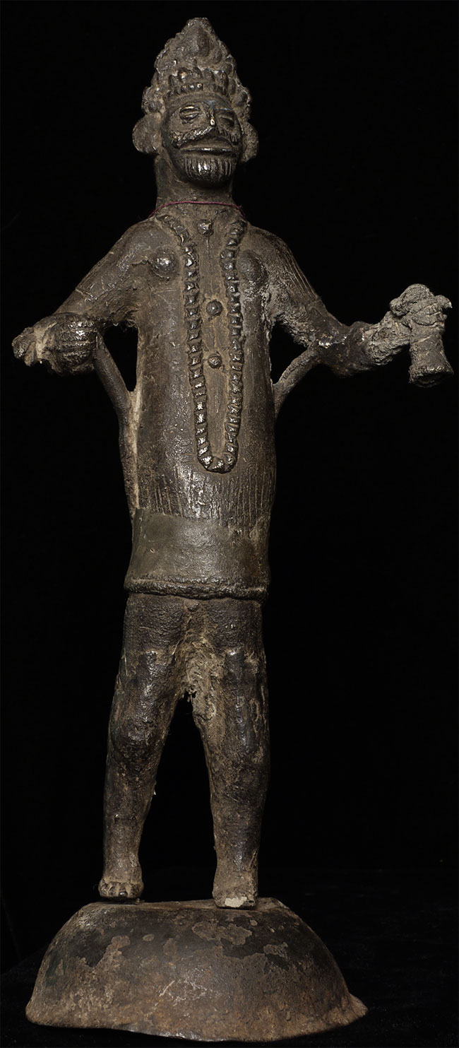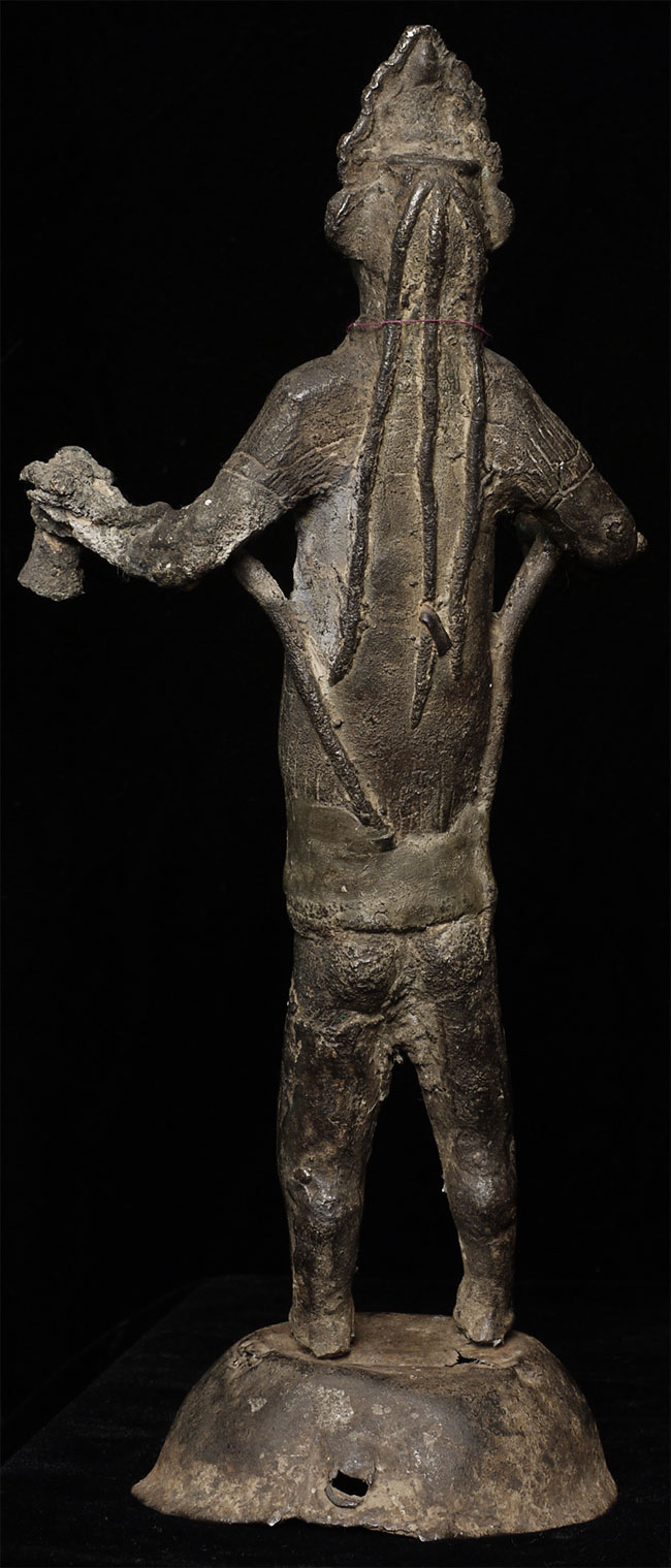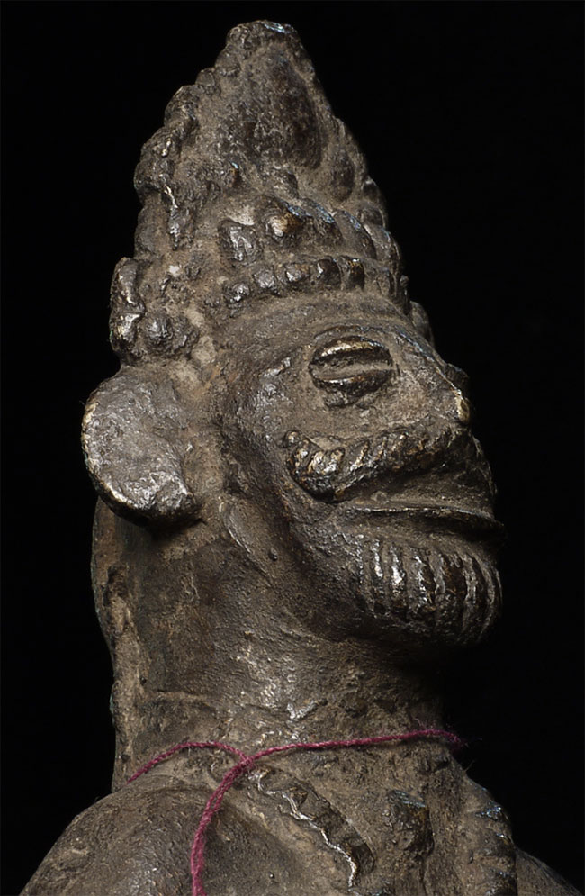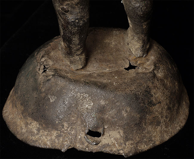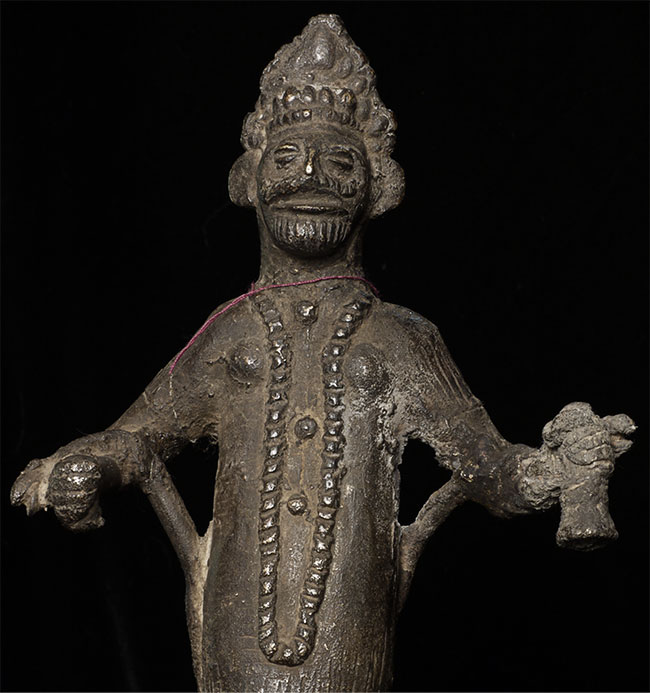 Very unusual antique Nepalese bronze figure. 10 3/8" tall includes attached base.