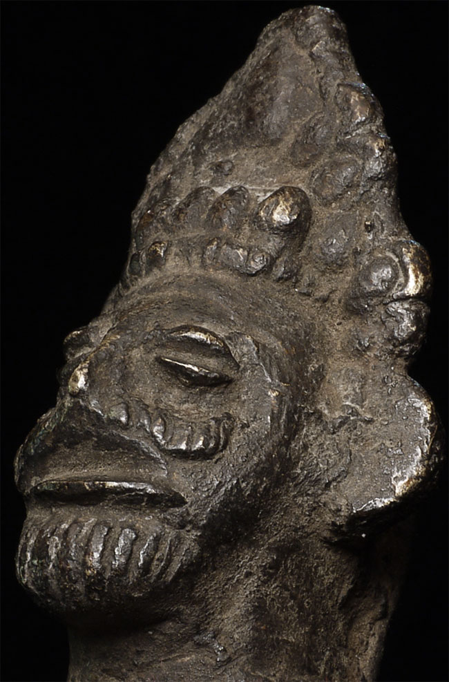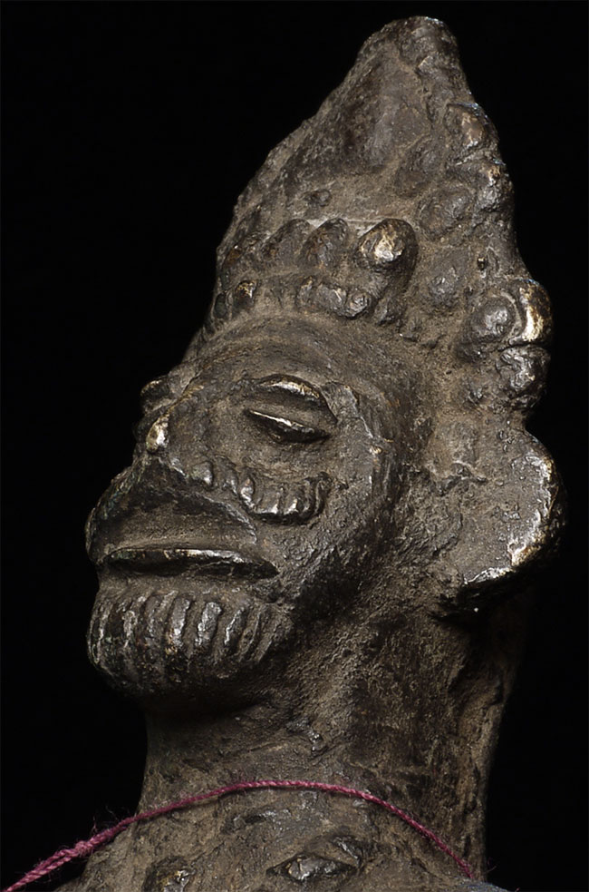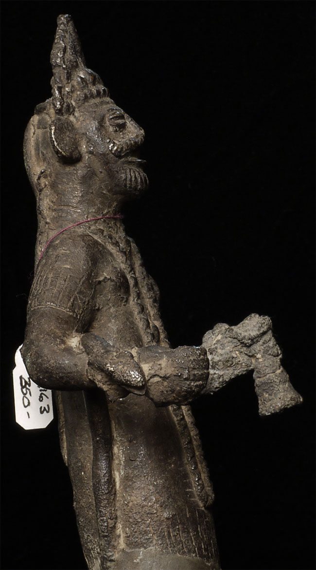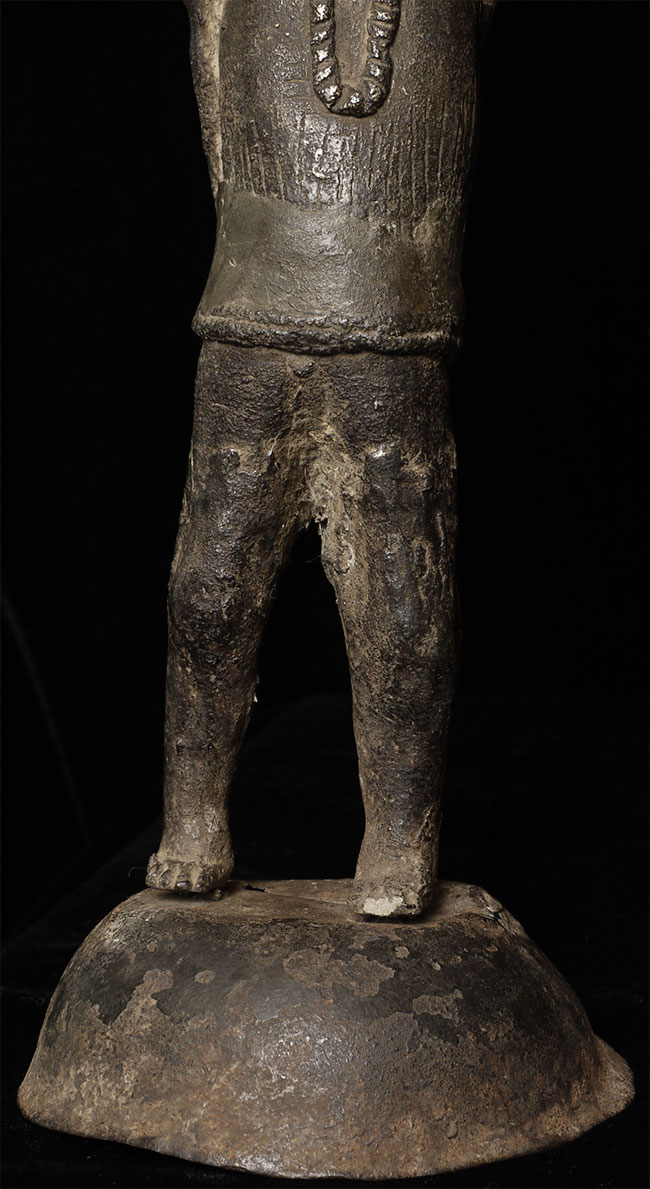 Very unusual antique Nepalese bronze figure. 10 3/8" tall includes attached base.
