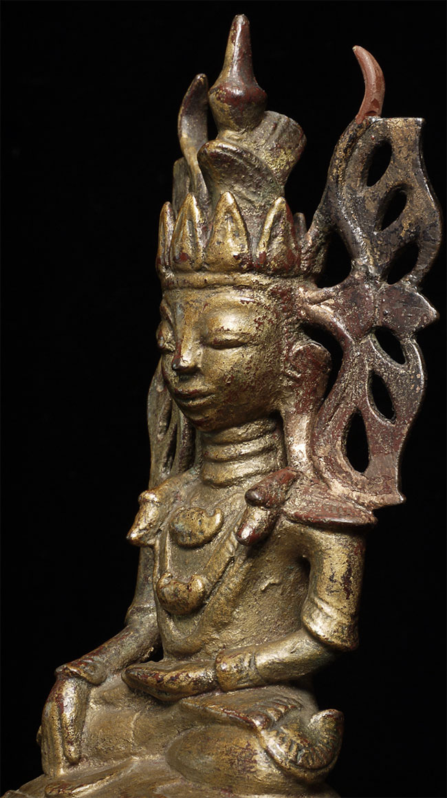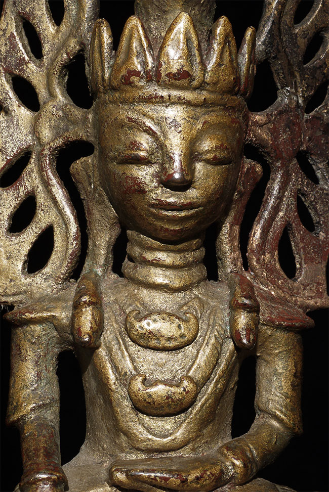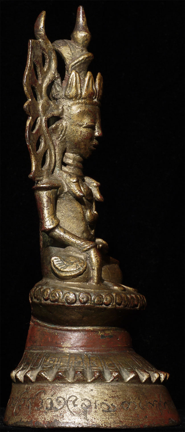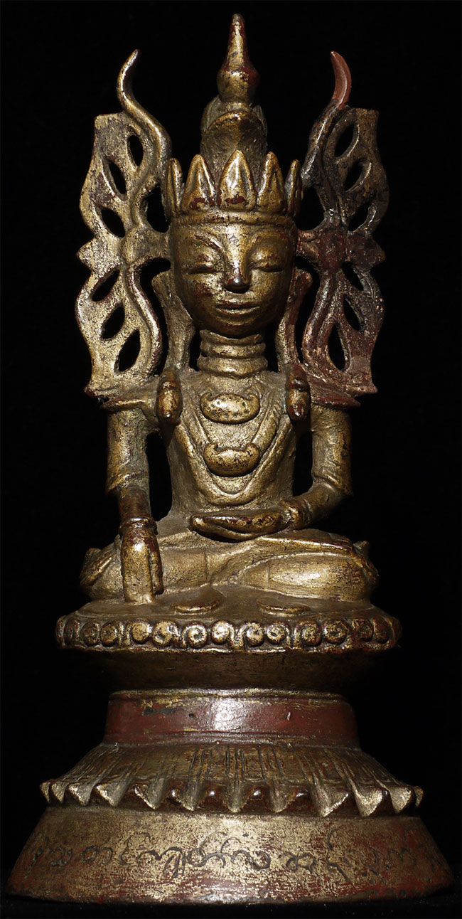 Fabulous 18thC Burmese Bronze Buddha. This type is referred to as the Jambupati style. Inscription on the base. A personal favorite. 6.75" tall