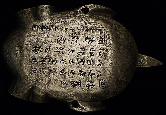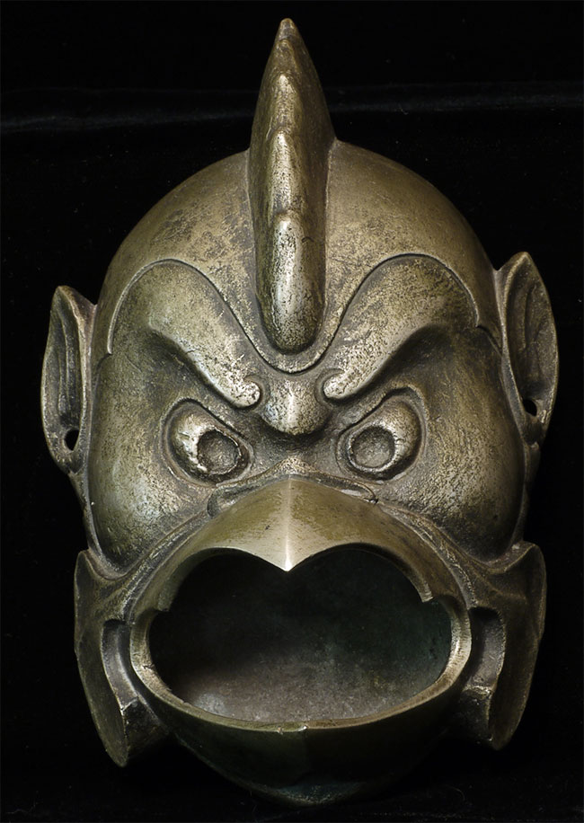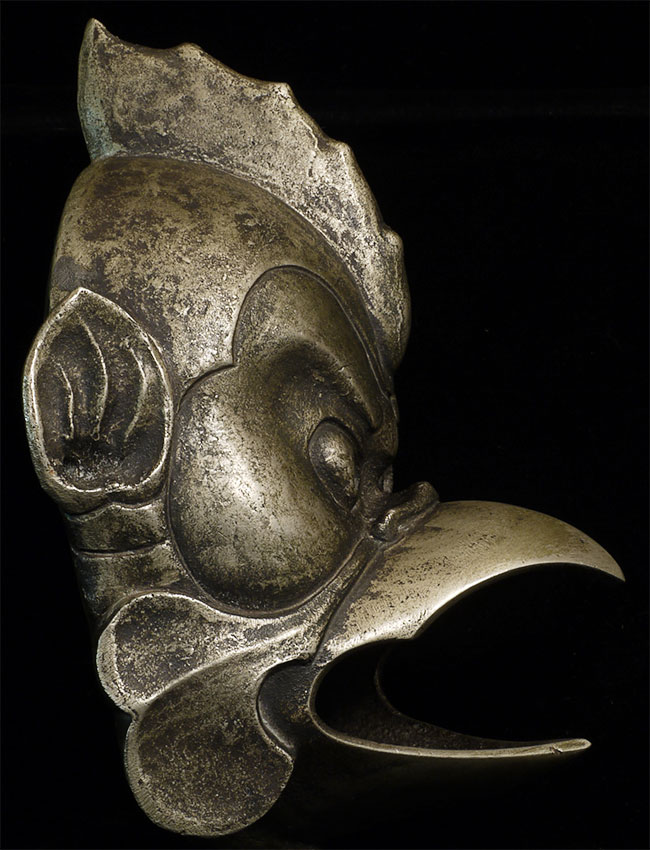 Antique Japanese Fierce Mythical Bird. Extensive writing on the back. 6" tall, 4" wide, 3.75" deep. Probably Meiji or late Edo.
