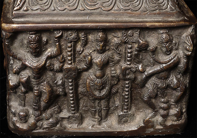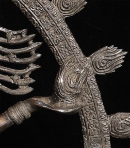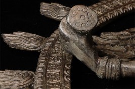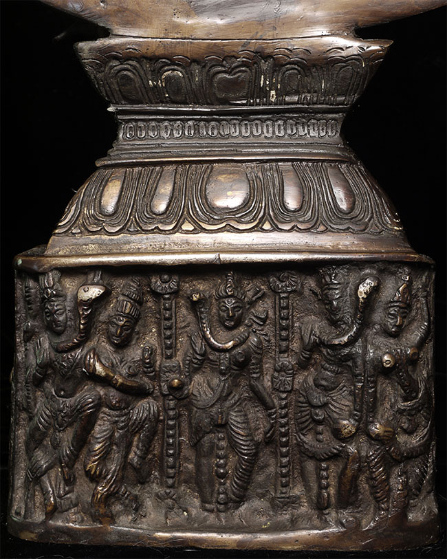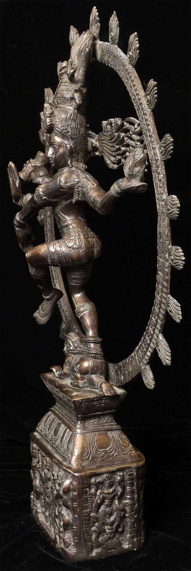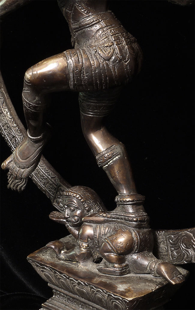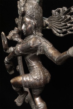Large and powerful vintage Shiva Nataraj, dancing the cosmic dance of the circle of creation and distruction. As with the best of this type, his face embodies equanimity and concentration. Stands an impressive 22" tall, 16.5" at widest point, 4" deep. Heavy