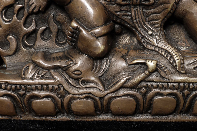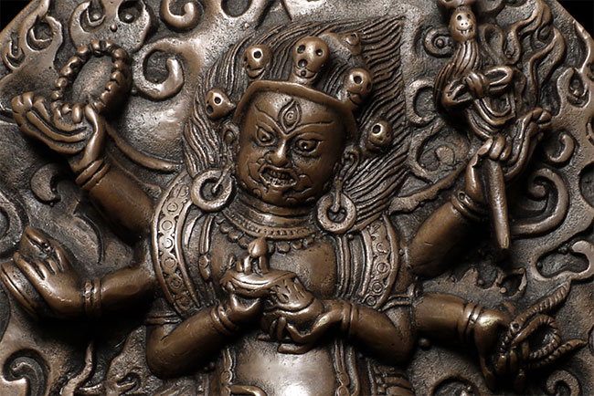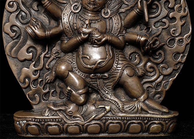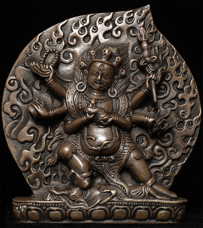 Powerful Antique Tibetan Bronze of Mahakala.4.5" tall, 4.25" wide, 7/8" deep. Unusual type.