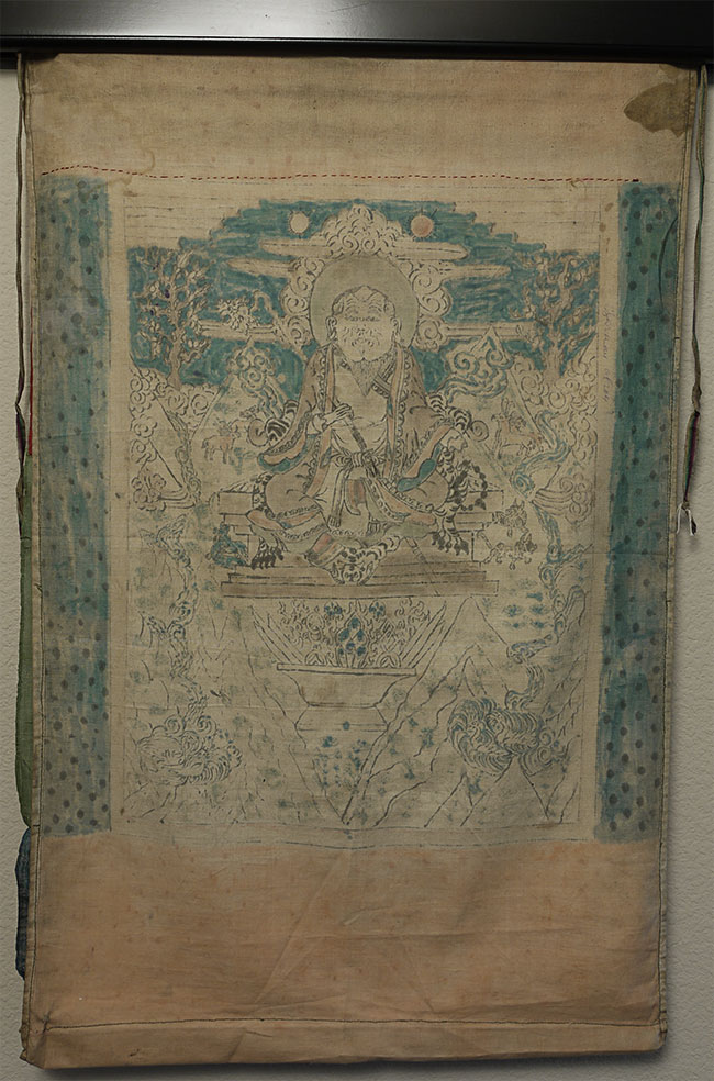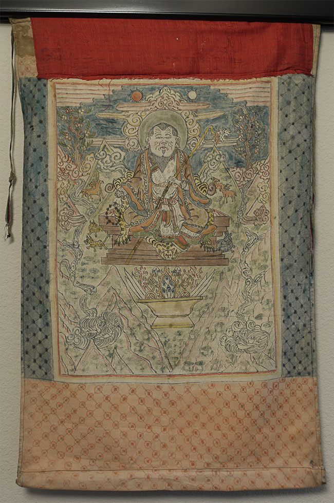 Antique Mongolian Thangka of a revered Buddhist teacher. Looks to be a hand colored woodblock-exceptional quality and condition-one of the nicest I've seen in a long time. Size is 24" x 37"