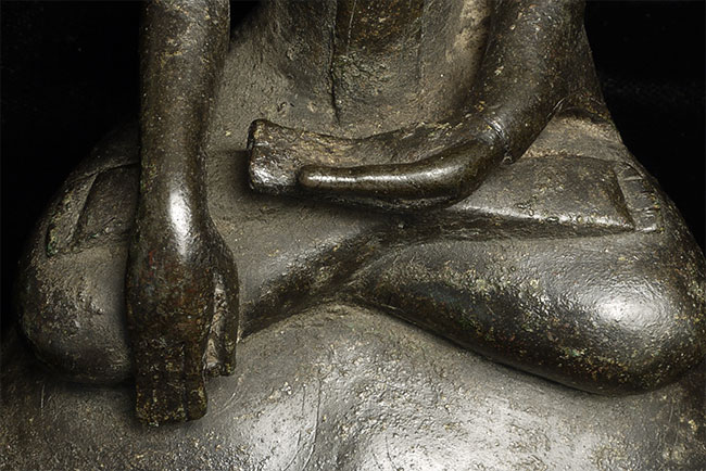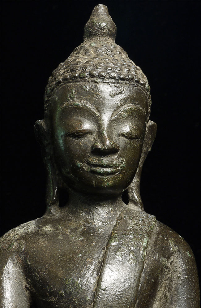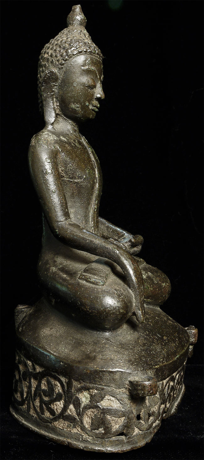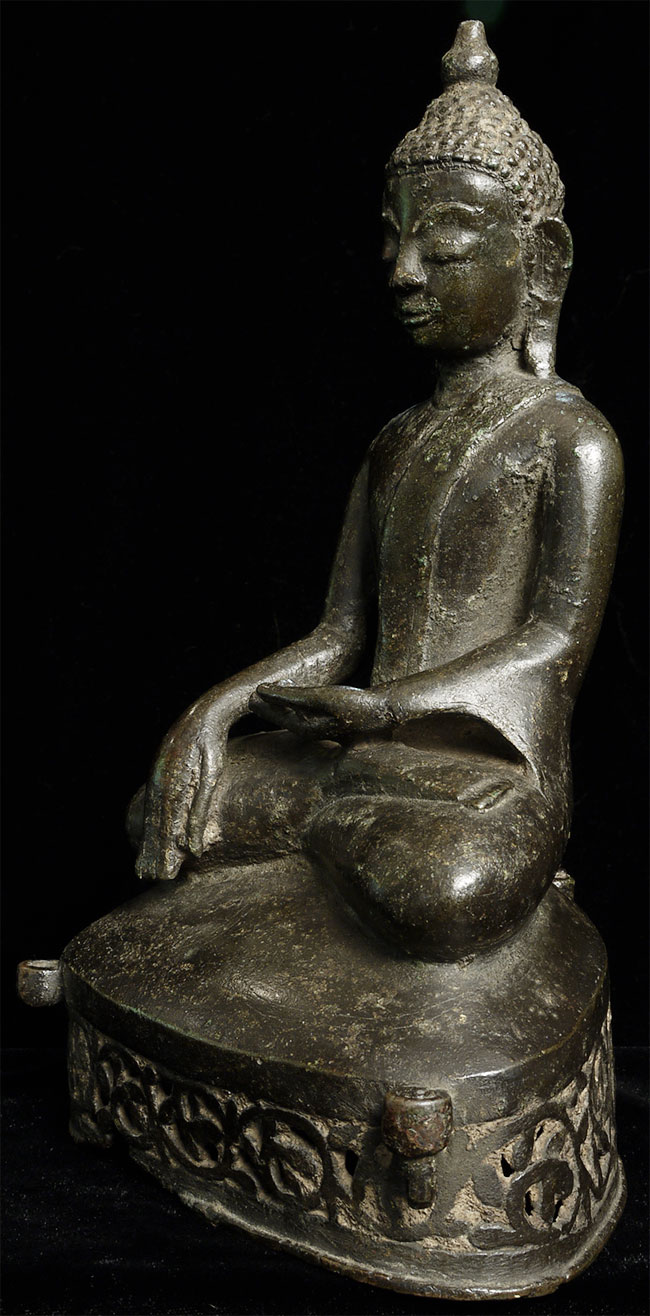 Lovely 17thC Burmese Arakan Buddha with a very uncommon base. Originally had small monks attached to the base. 7.75" tall