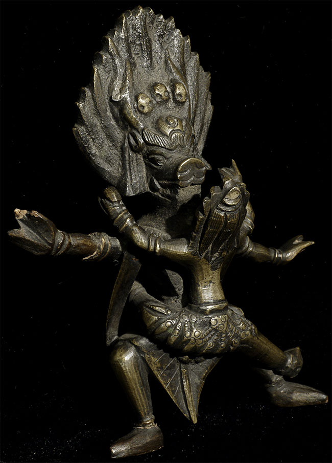 Early 20th century Yamantanka with consort. Stands 4.5" tall. Stands on its own, but in order to be stable it could use a base.