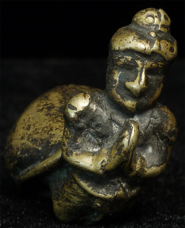 Unusual Old Lao or Northern Thai bronze amulet- probably carried for luck, protection, or prosperity, or to indicate devotion. 1.75" long, 7/8" tall