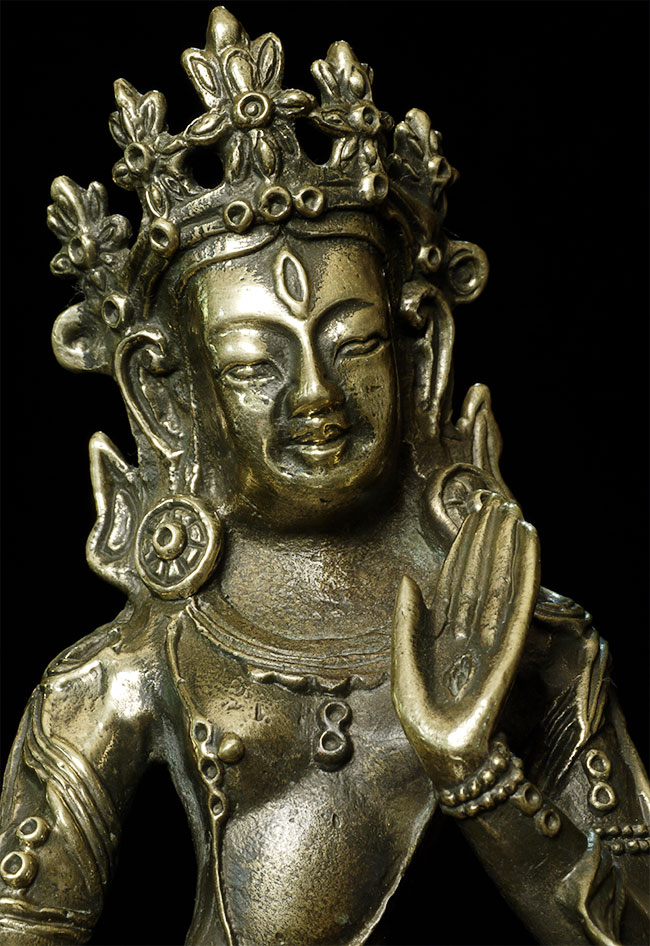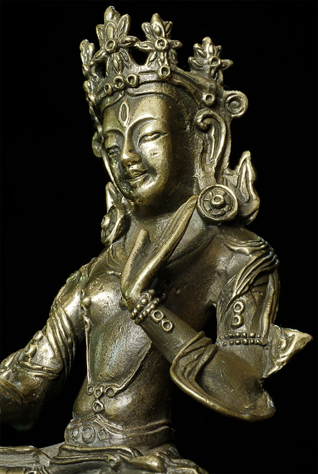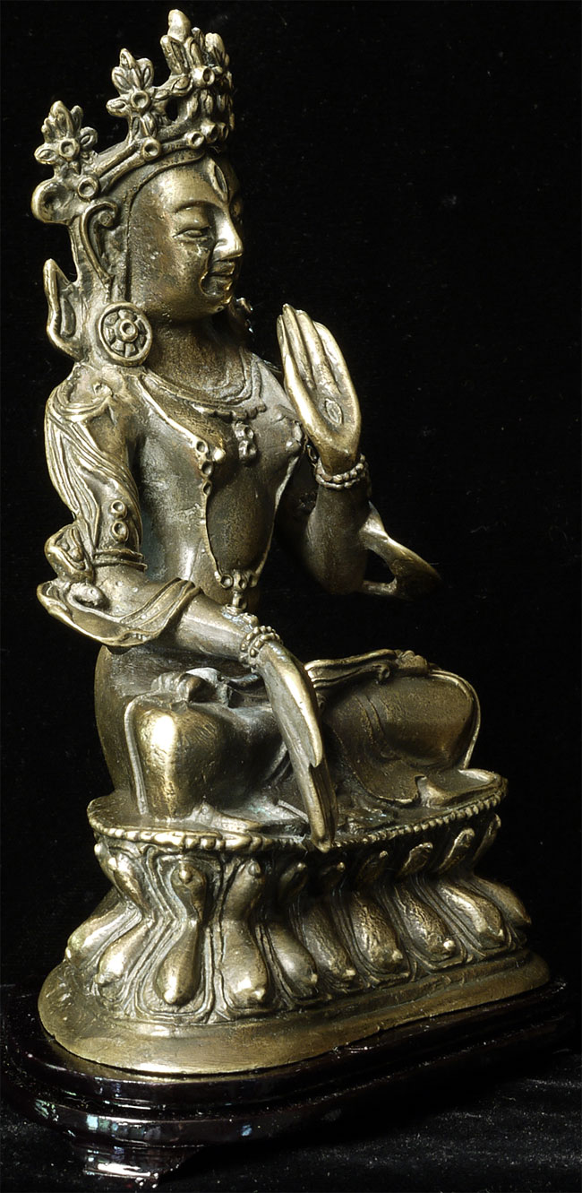 Vintage Tibetan or Chinese Bodhisattva. 6.25" tall, stand (not included) adds an additional .5"