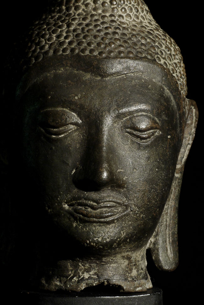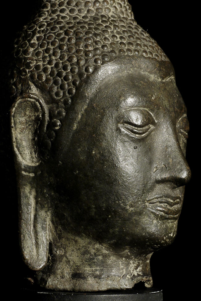 Old Thai bronze Utong Buddha head. In a 15thC style, though may be 19thc or early 20th. Head is 5 1/8" tall, optional stand elevates it an additional 2"