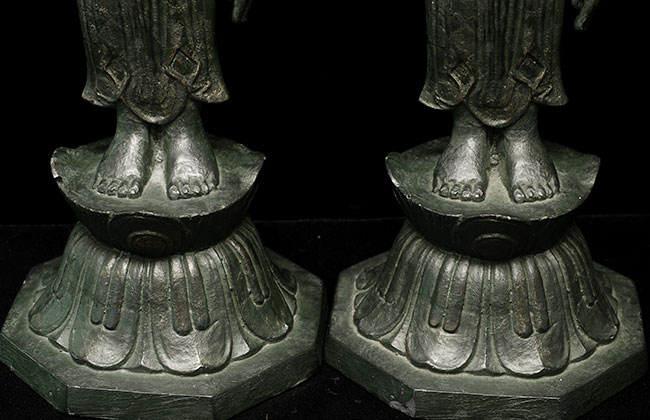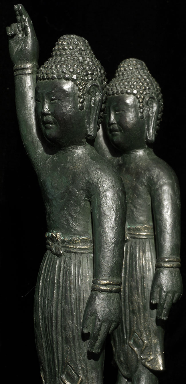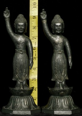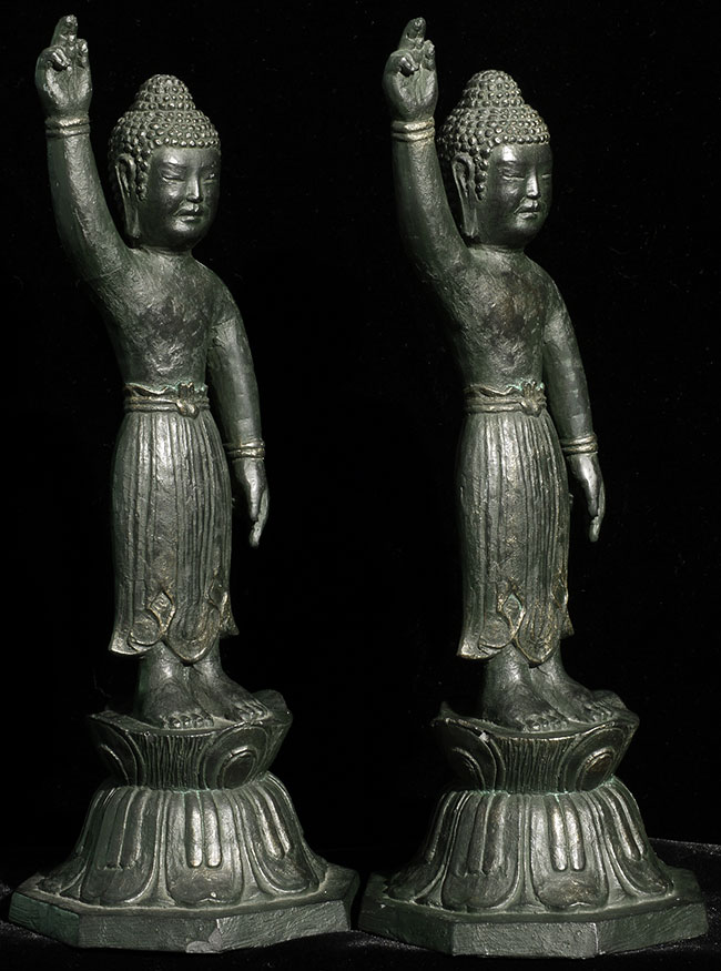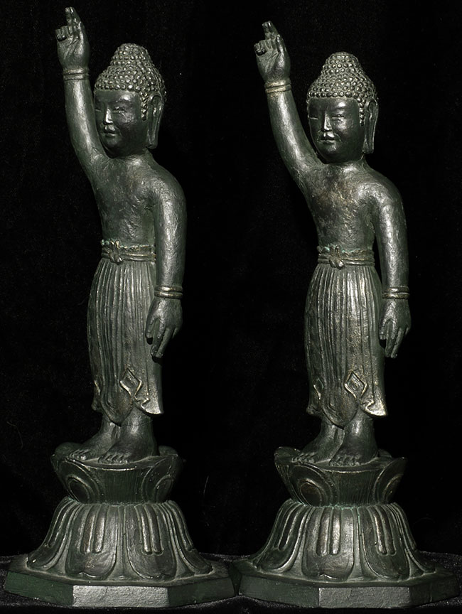 Decorative pair of vintage/old Japanese Baby Buddhas. Cast out of a resin or other mystery material. is 9.25" tall. Based on information from the previous owner, probably 60+ years old.