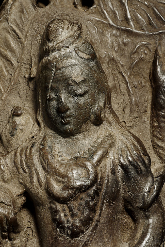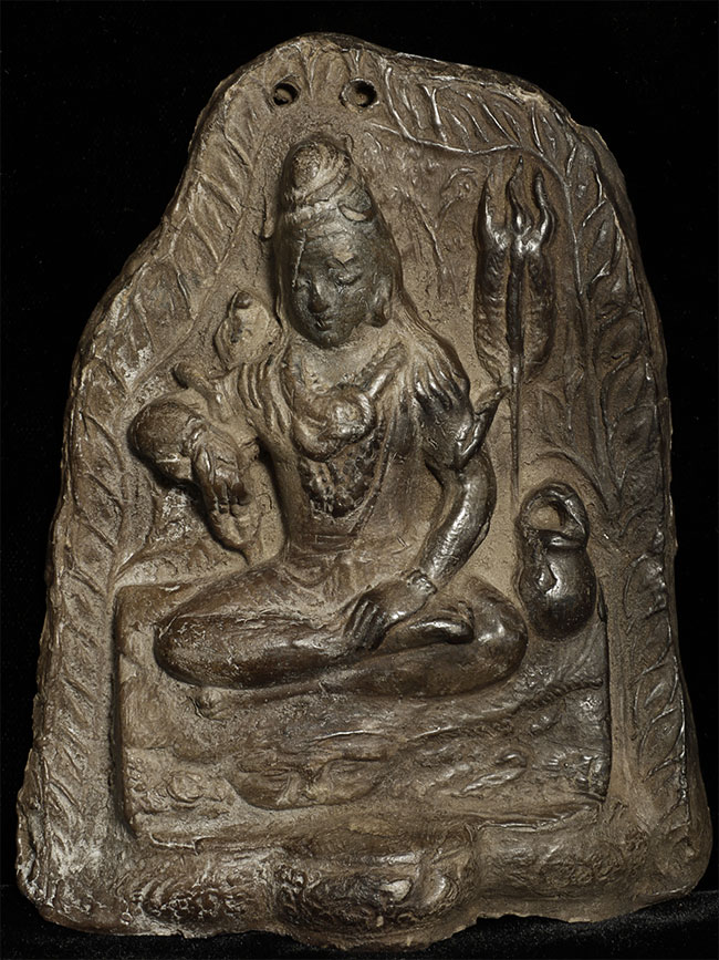 Old/antique Nepalese clay Shiva wall hanging. Good size for its type at 5 7/8" tall, 4.5" at widest point.